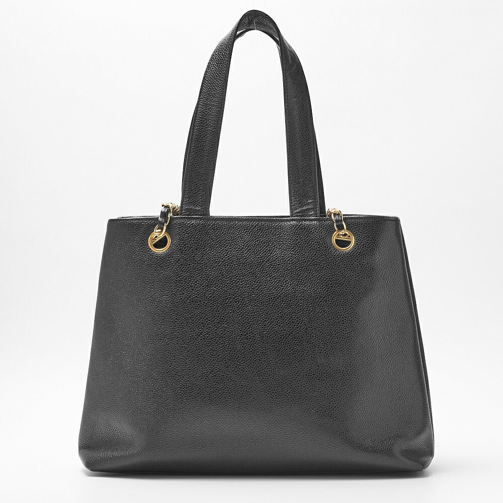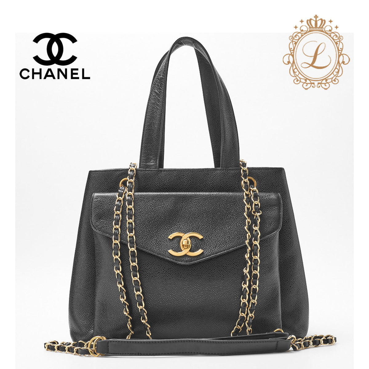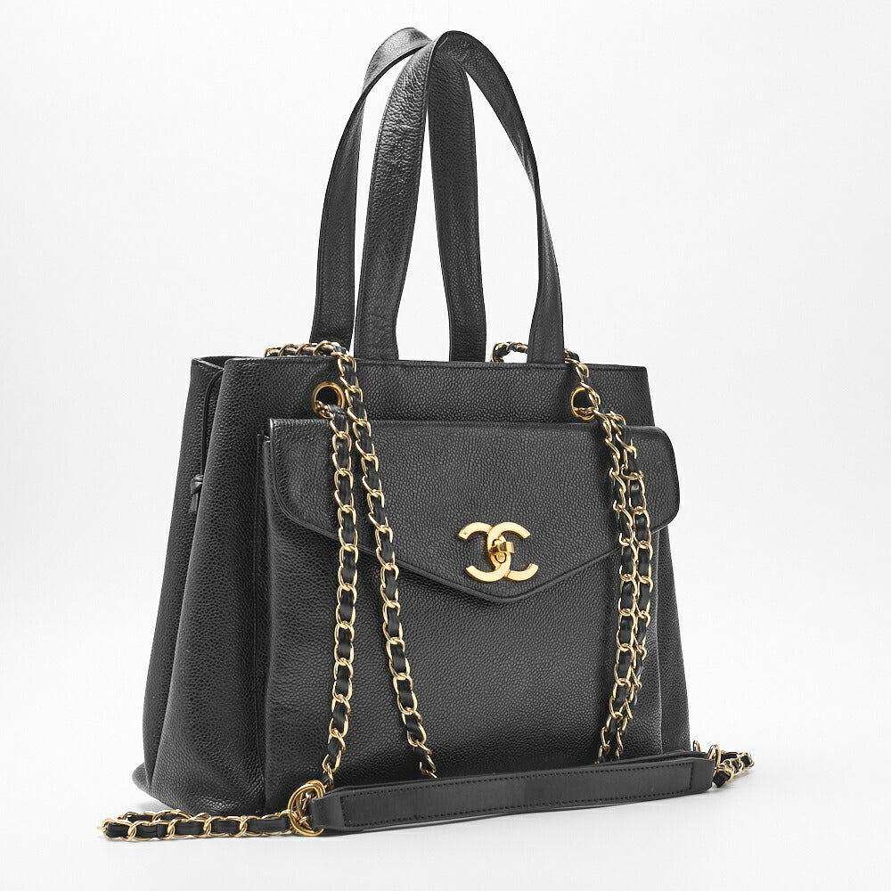 Pre-Owned Shoulder Bag 2WAY Outside Flap Turn Lock Caviar Skin Black Gold-Tone Hardware Pre-Owned