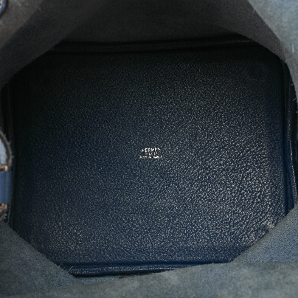 Elevate your accessory collection with the HERMES Hermes Picotan MM Handbag in stunning Blue Tempete with silver fittings. Crafted from luxurious Tryon Clemence leather, this handbag is not only a statement piece but also a functional essential for modern women.