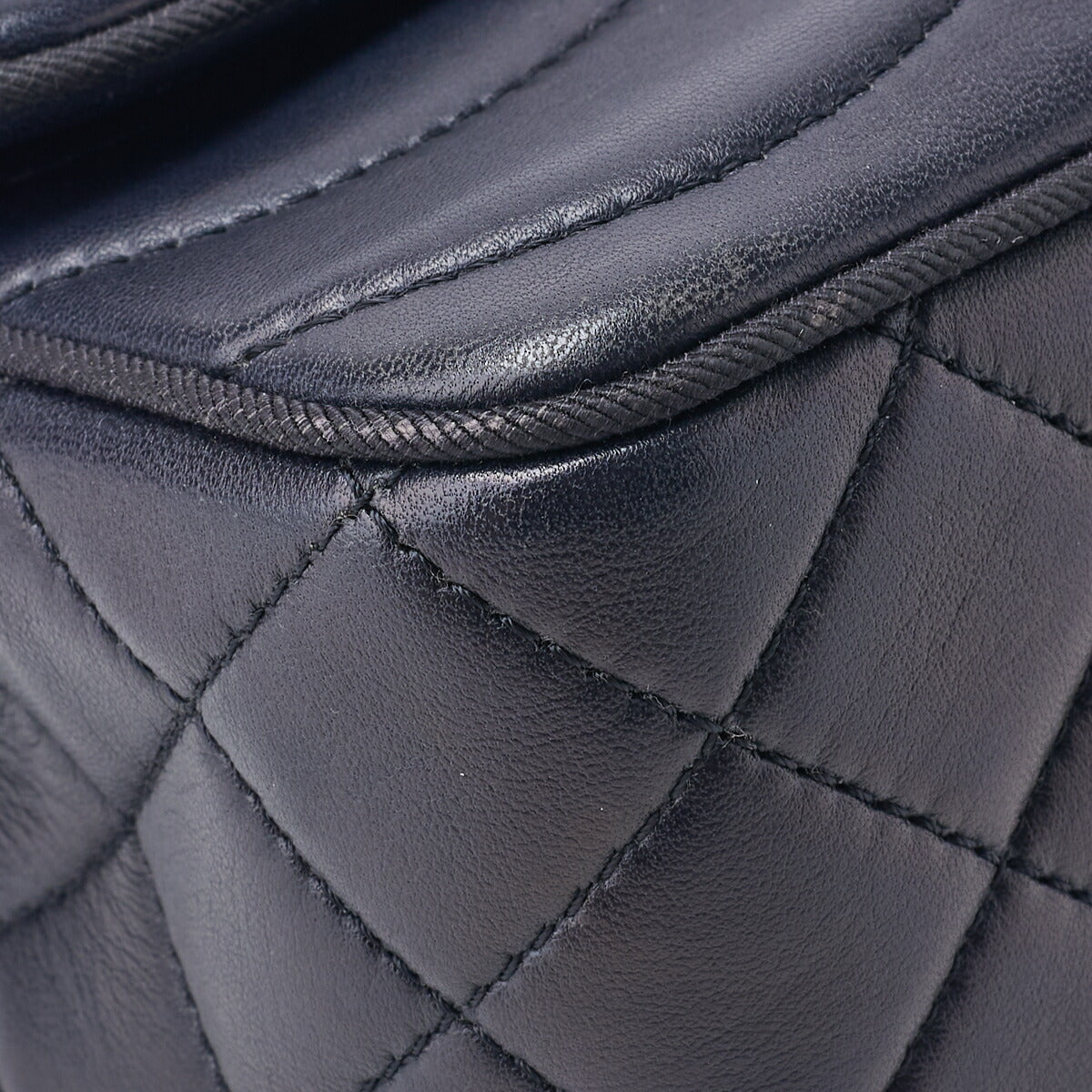 Pre-Owned Shoulder Bag, Push Lock, Wave Stitch, Lambskin Canvas, Navy, Gold-Tone Hardware, Pre-Owned