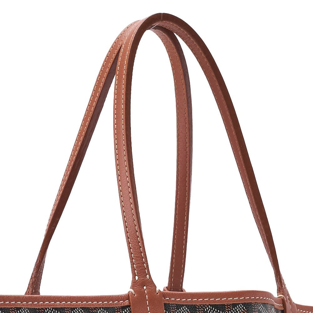 Elevate your accessory game with the GOYARD Saint Louis PM Tote Bag, a perfect blend of sophistication and practicality crafted from durable coated canvas. This stunning black and brown tote is adorned with elegant silver metal fittings, making it an exquisite choice for the modern woman.