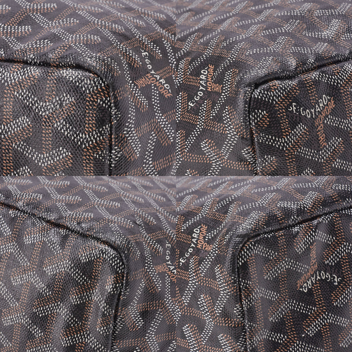 Elevate your accessory collection with the GOYARD Saint Louis PM Tote Bag in luxurious black coated canvas. This iconic tote is not just a bag; it's a statement piece that combines functionality with timeless elegance. Perfect for the modern woman on the go, this pre-owned gem comes with silver metal fittings that enhance its sophisticated appeal.