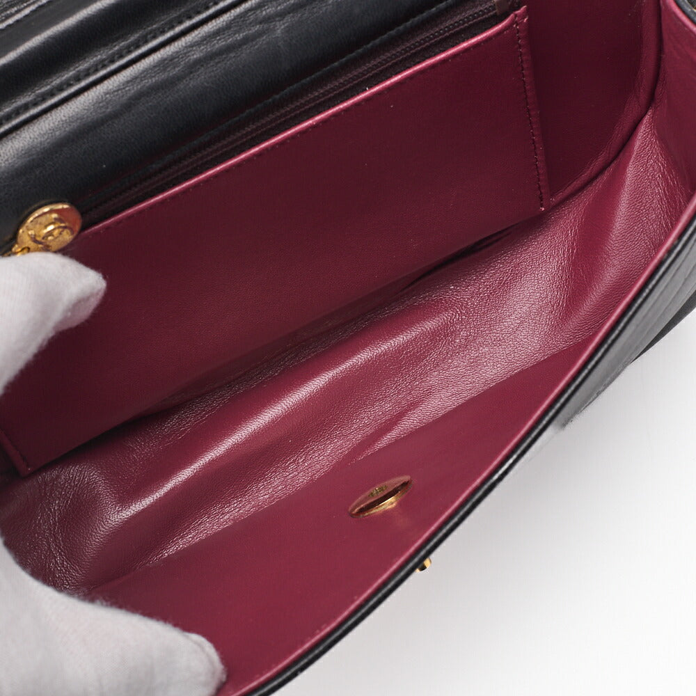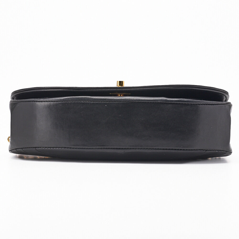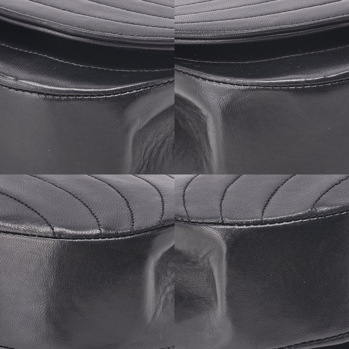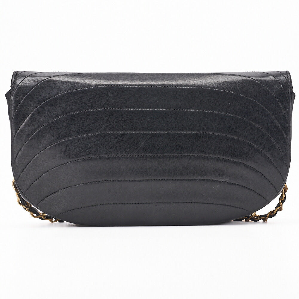 Pre-Owned Shoulder Bag Border Stitch Half Moon Lambskin Black Gold-Tone Hardware Pre-Owned