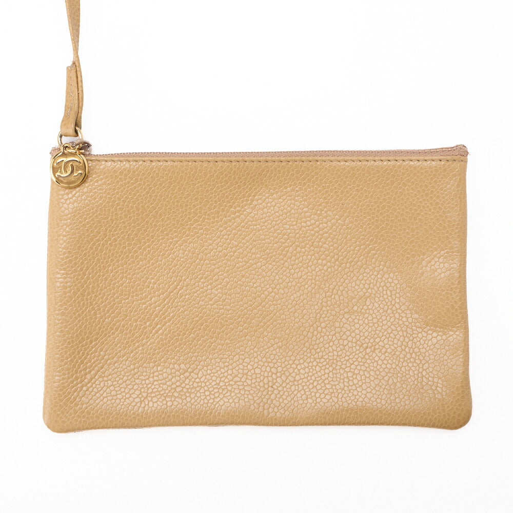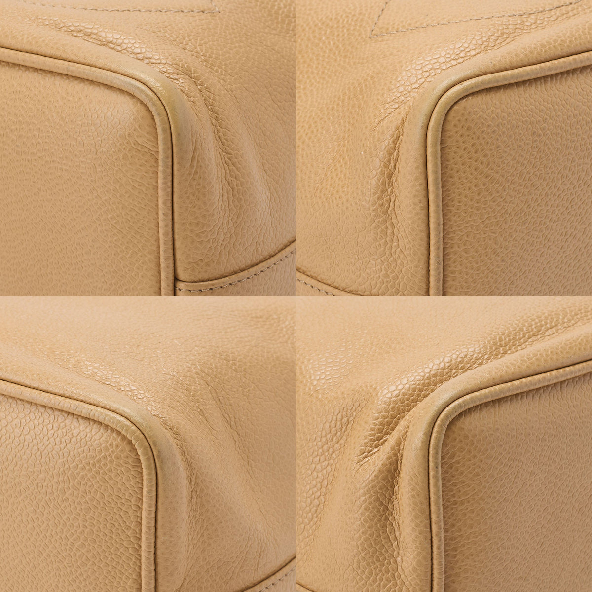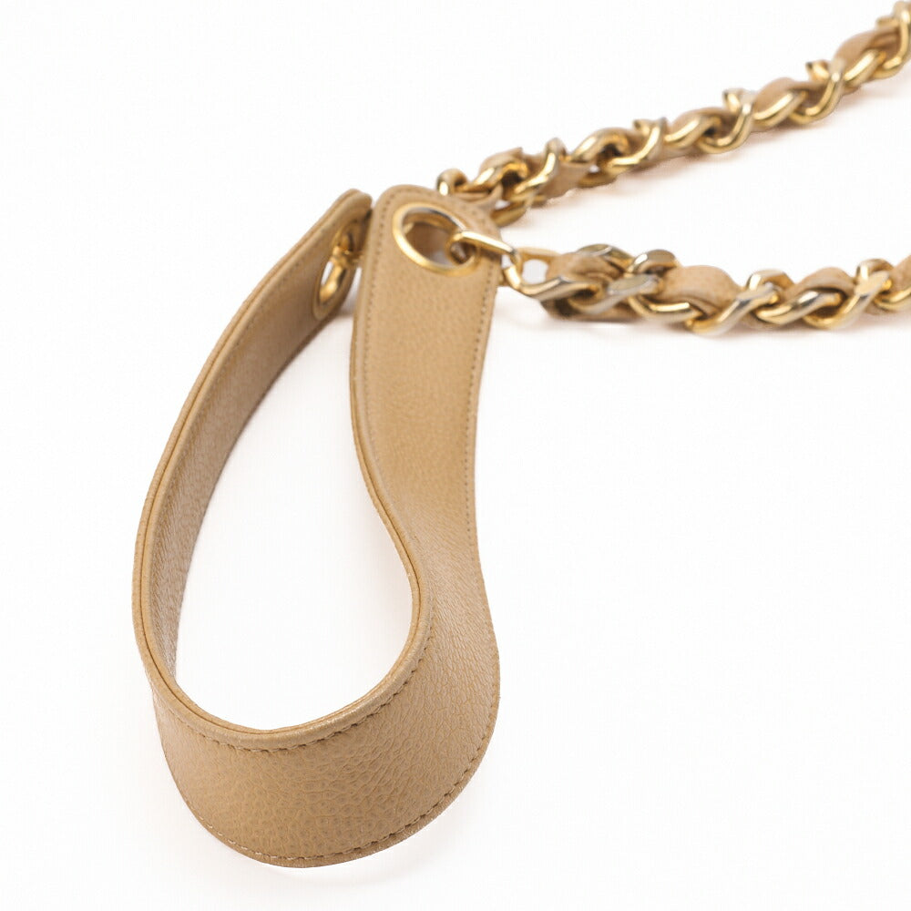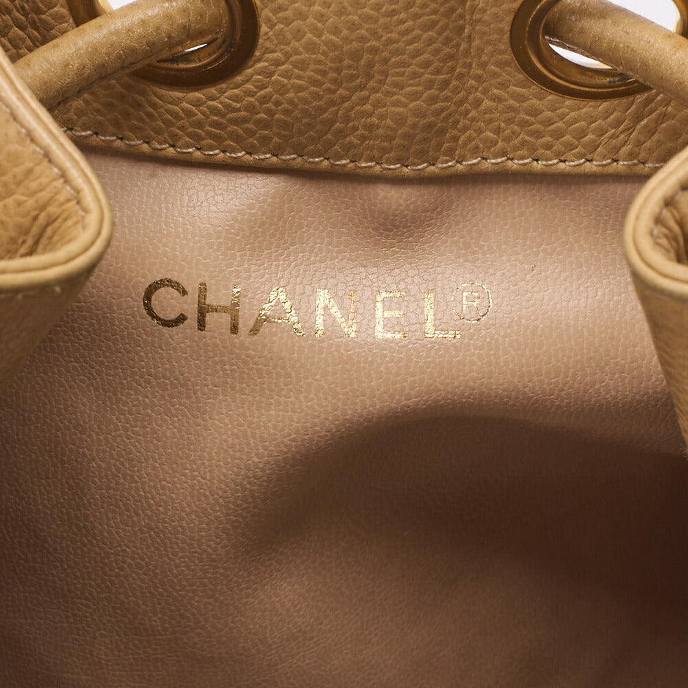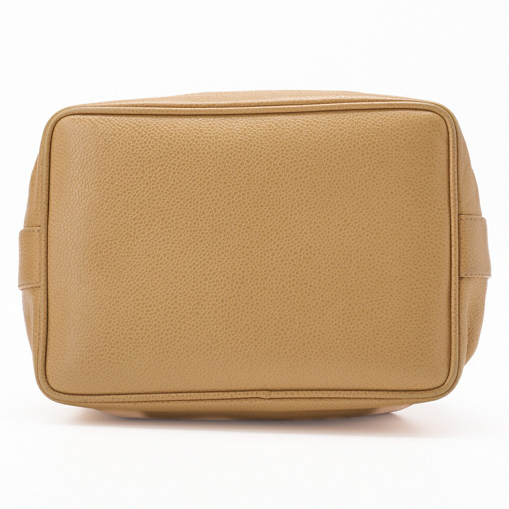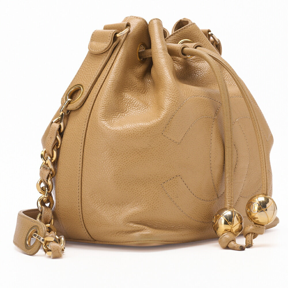 Pre-Owned Shoulder Bag Coco Mark Drawstring Ball Charm Caviar Leather Beige Gold-Tone Hardware Pre-Owned