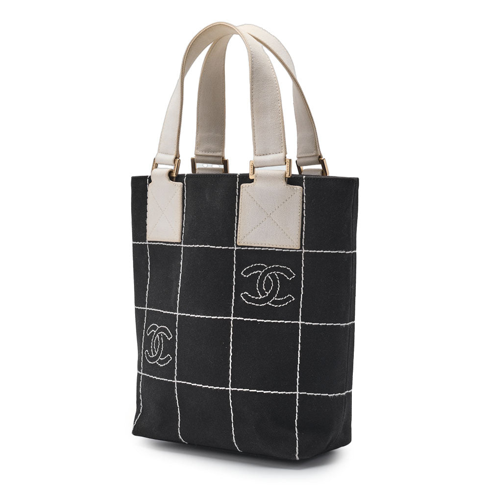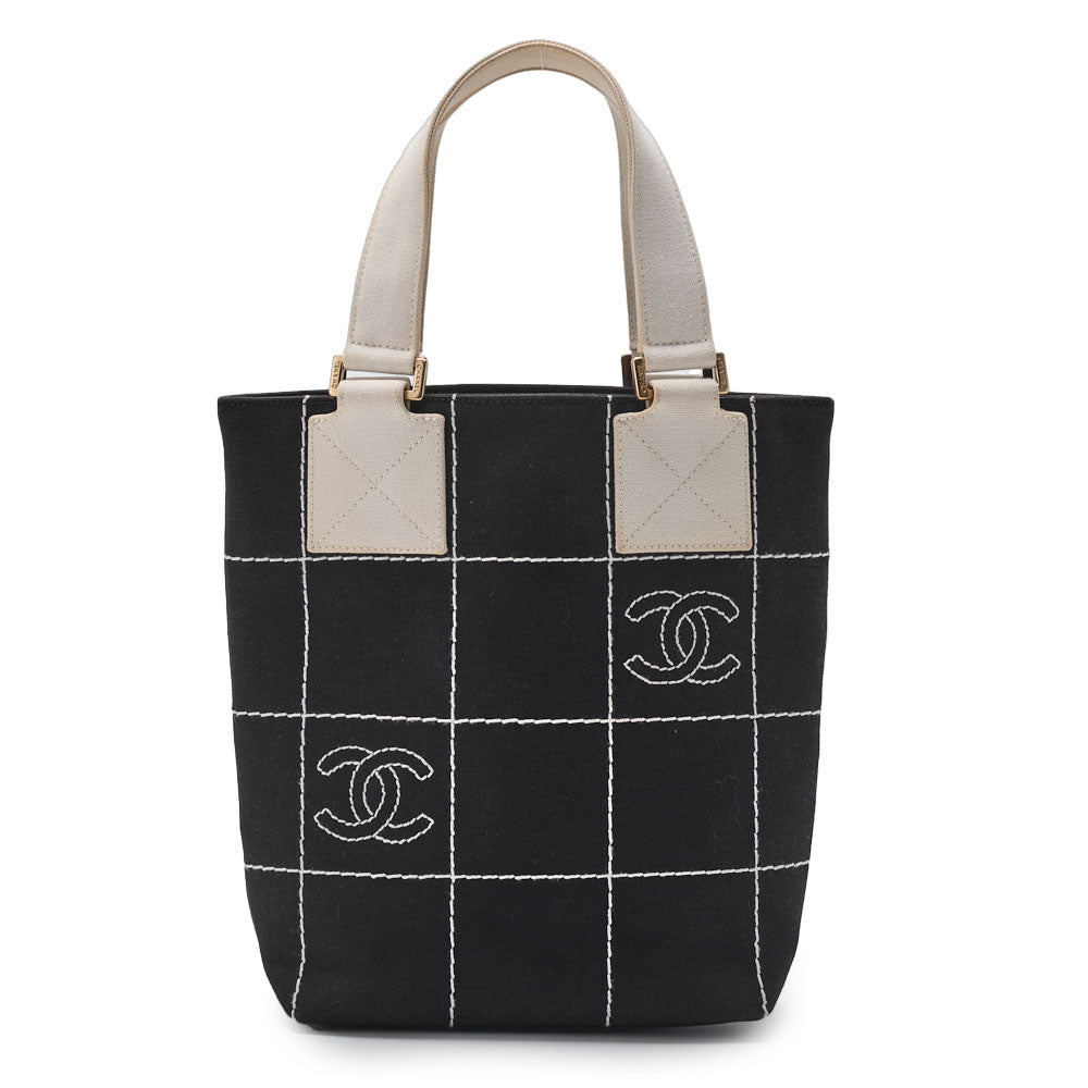 Elevate your style with the CHANEL Chanel Shoulder Bag Handbag Chocolate Bar. Crafted with premium canvas in a striking black and white combination, this exquisite tote bag is a must-have for fashion enthusiasts. The elegant gold metal fittings add a touch of sophistication, making it perfect for both casual outings and formal events.