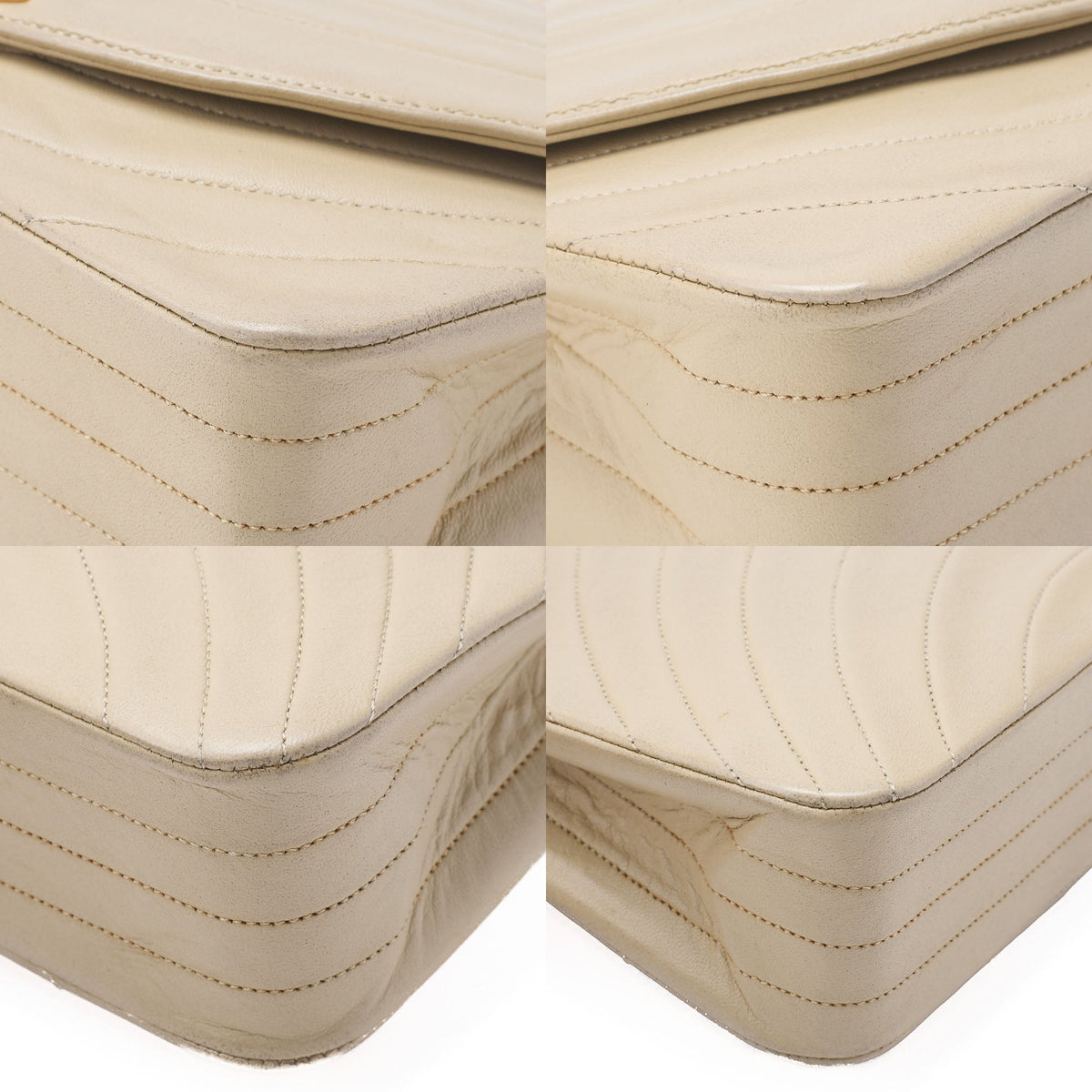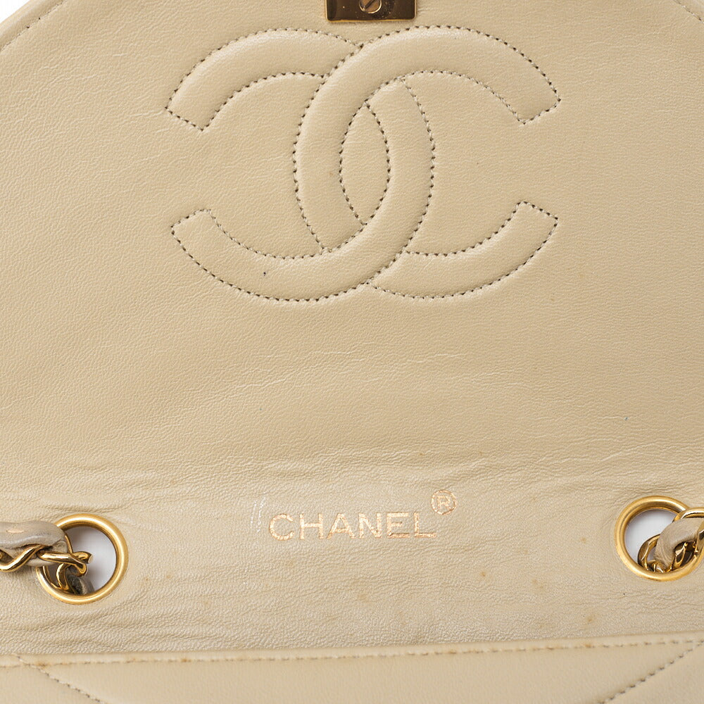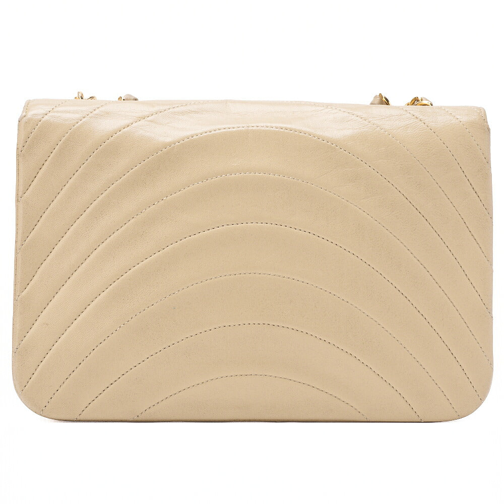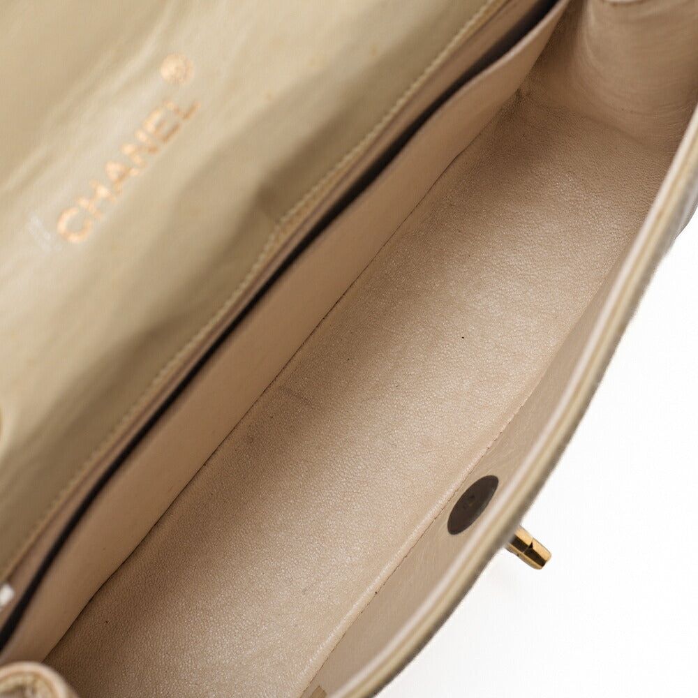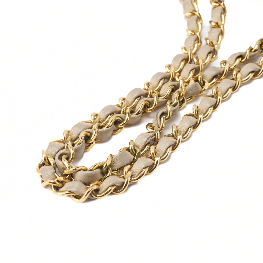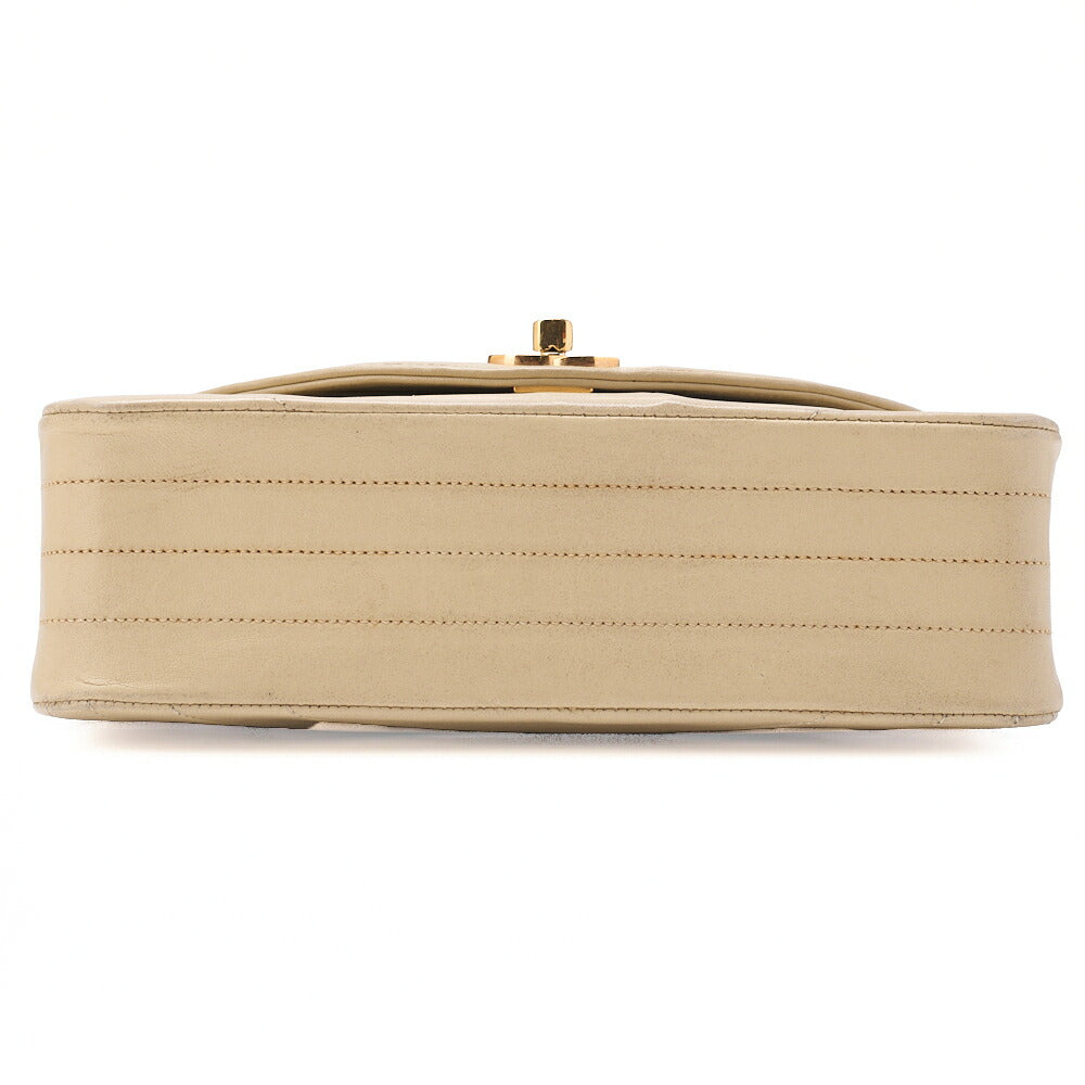 Pre-Owned Shoulder Bag Matelasse Border Stitch Chain Shoulder Lambskin Beige Gold-Tone Hardware Pre-Owned