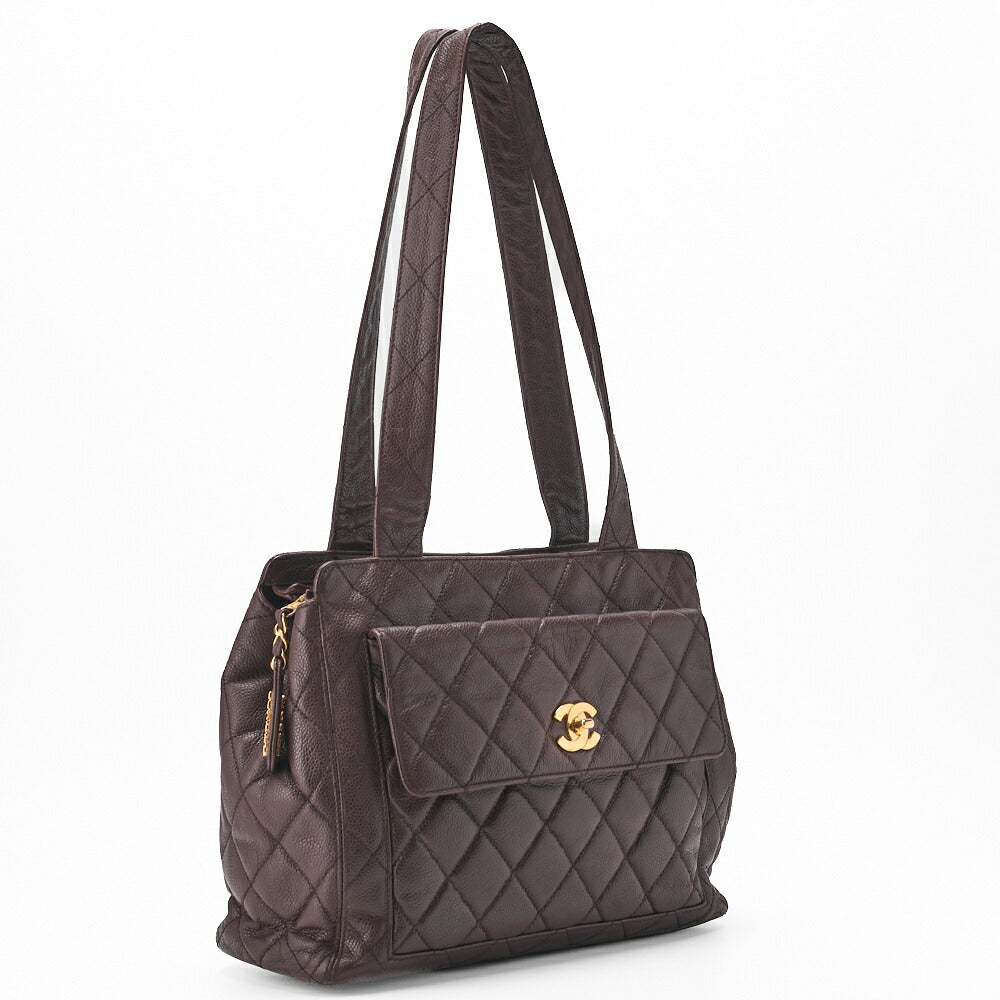 Discover luxury redefined with the CHANEL Chanel Shoulder Bag Matelasse, an exquisite piece crafted from premium Caviar Skin. This stunning bag, presented in a sophisticated brown hue accented with gold metal fittings, is the perfect accessory for the modern woman.
