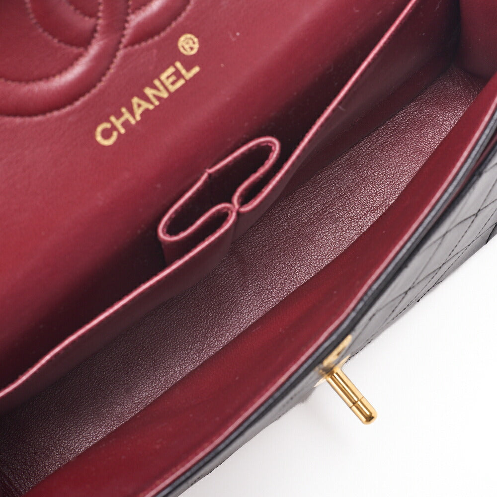 Pre-Owned Shoulder Bag Matelasse Double Flap Lambskin Black Gold-Tone Hardware Pre-Owned