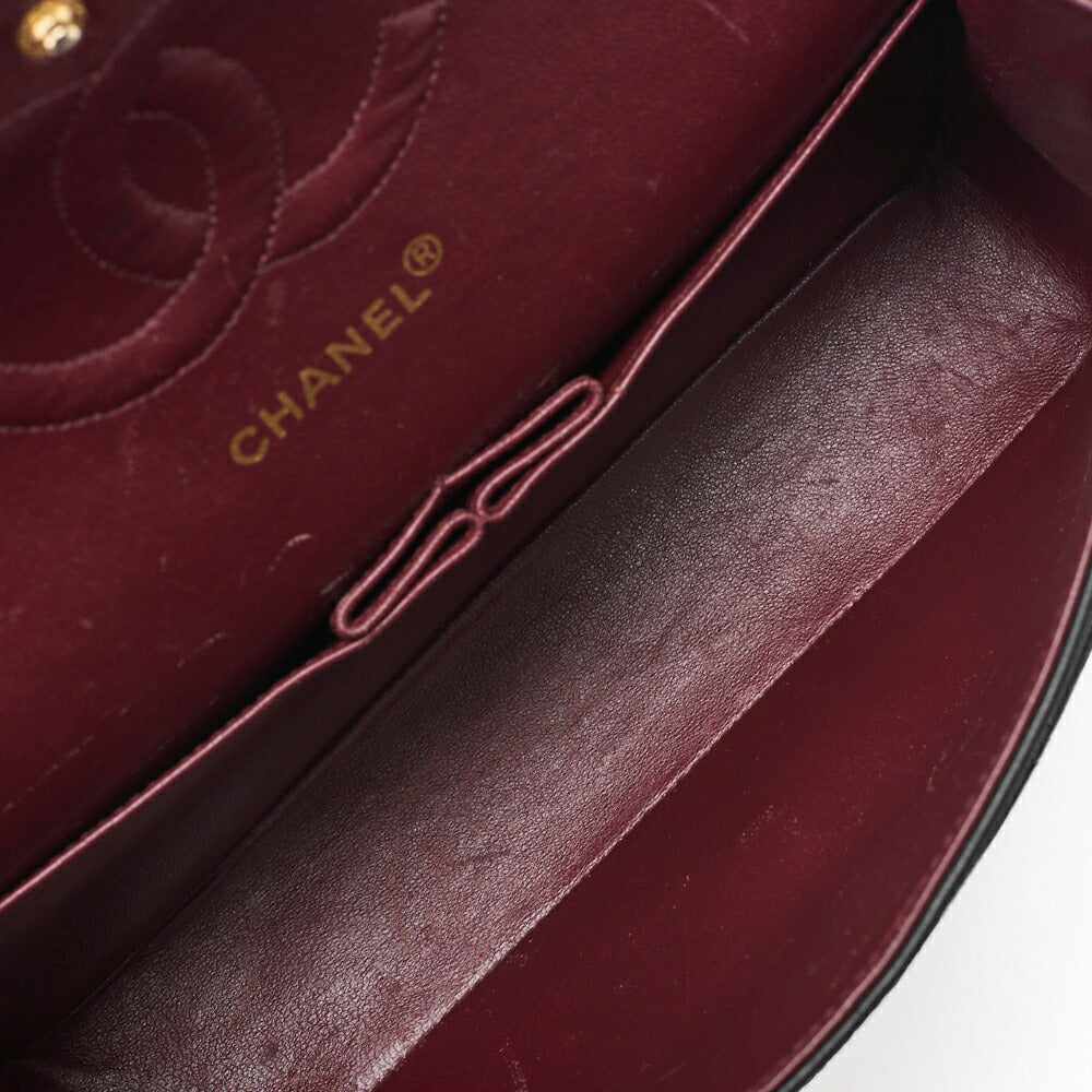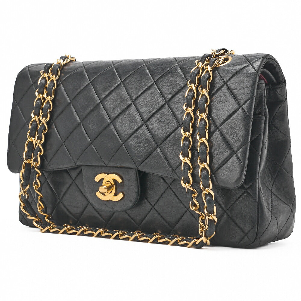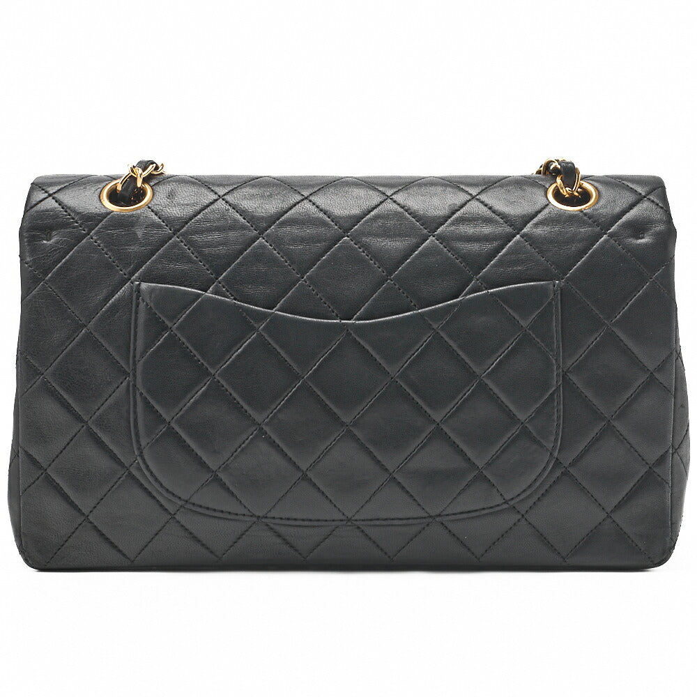 Pre-Owned Shoulder Bag Matelasse Double Flap Lambskin Black Gold-Tone Hardware Pre-Owned