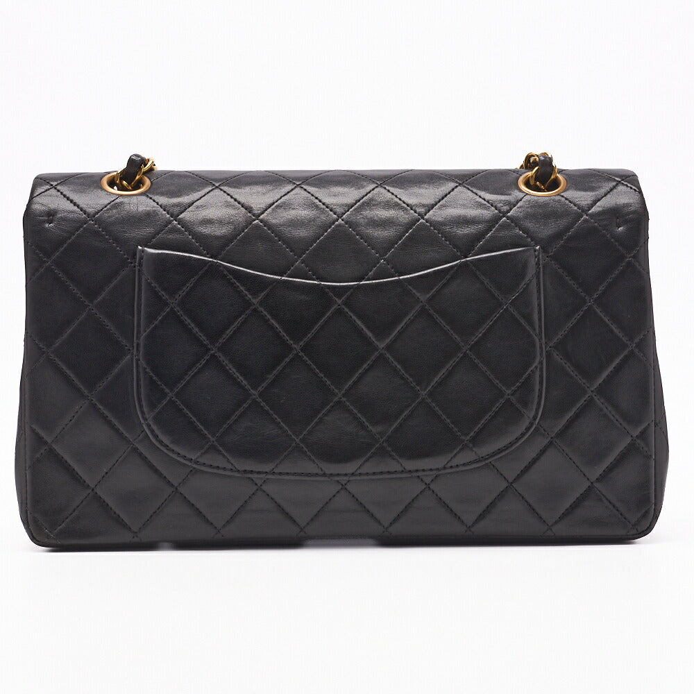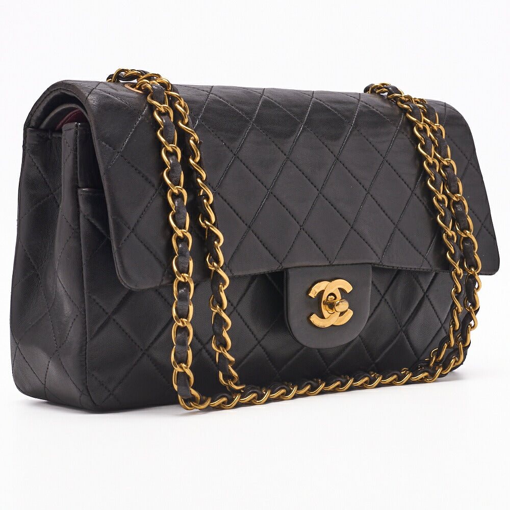 Elevate your accessory game with the exquisite CHANEL Chanel Shoulder Bag Matelasse Double Flap, a timeless piece that effortlessly combines luxury and functionality. Crafted from sumptuous lambskin leather in a sophisticated black hue, this bag features elegant gold metal fittings that add a touch of opulence.