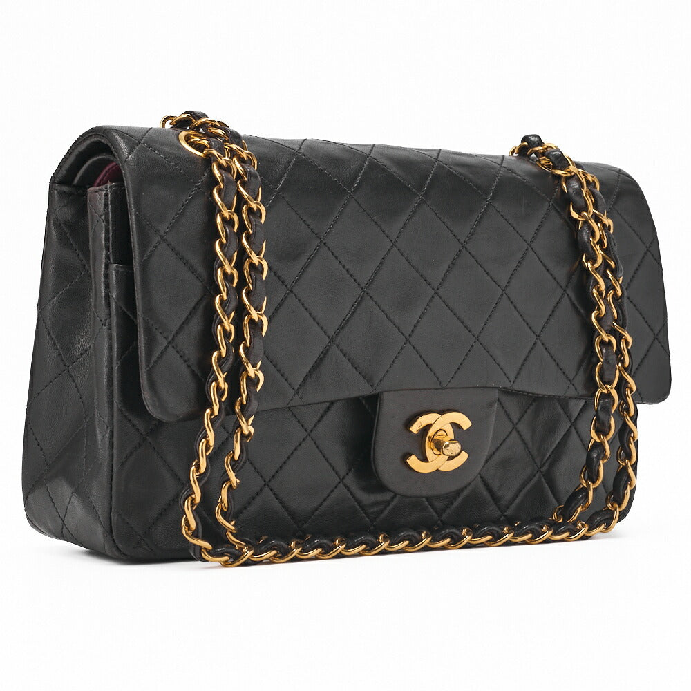 Elevate your style with the exquisite CHANEL Chanel Shoulder Bag Matelasse Double Flap, a true embodiment of luxury and sophistication. Crafted from premium lambskin, this stunning bag in classic black features elegant gold metal fittings that add a touch of glamour to your ensemble.