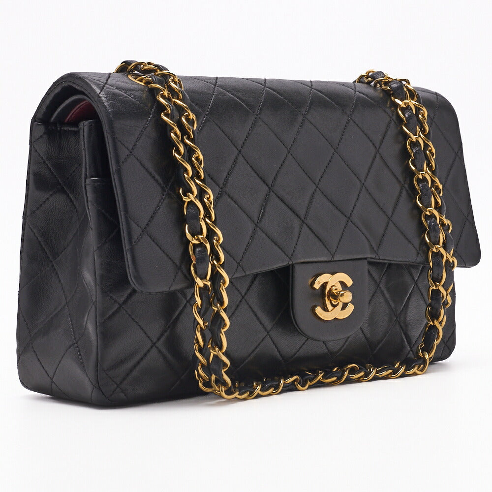 Experience the timeless elegance of the CHANEL Chanel Shoulder Bag Matelasse Double Flap. This exquisite handbag, crafted from luxurious lambskin and adorned with striking gold metal fittings, is the perfect accessory for any fashion-forward woman. With its classic black hue, this bag effortlessly complements any outfit, making it a versatile addition to your collection.