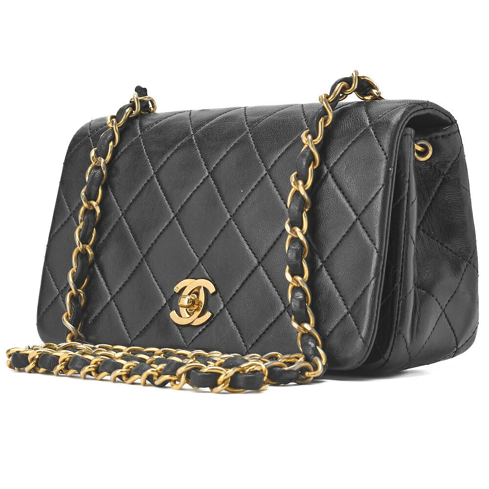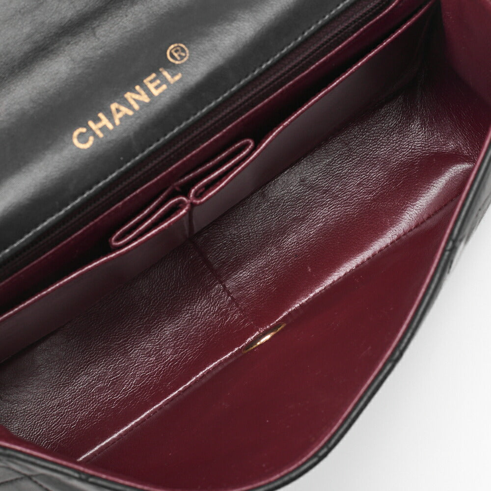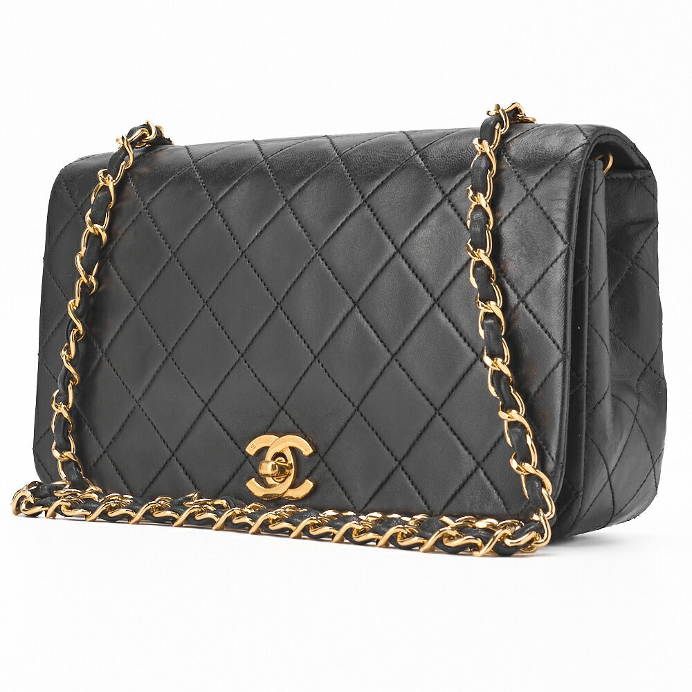 Elevate your accessory game with the CHANEL Chanel Shoulder Bag Matelasse Lambskin. This exquisite piece features a striking black lambskin exterior complemented by luxurious gold metal fittings, making it an essential addition to your wardrobe.
