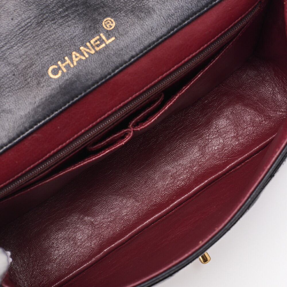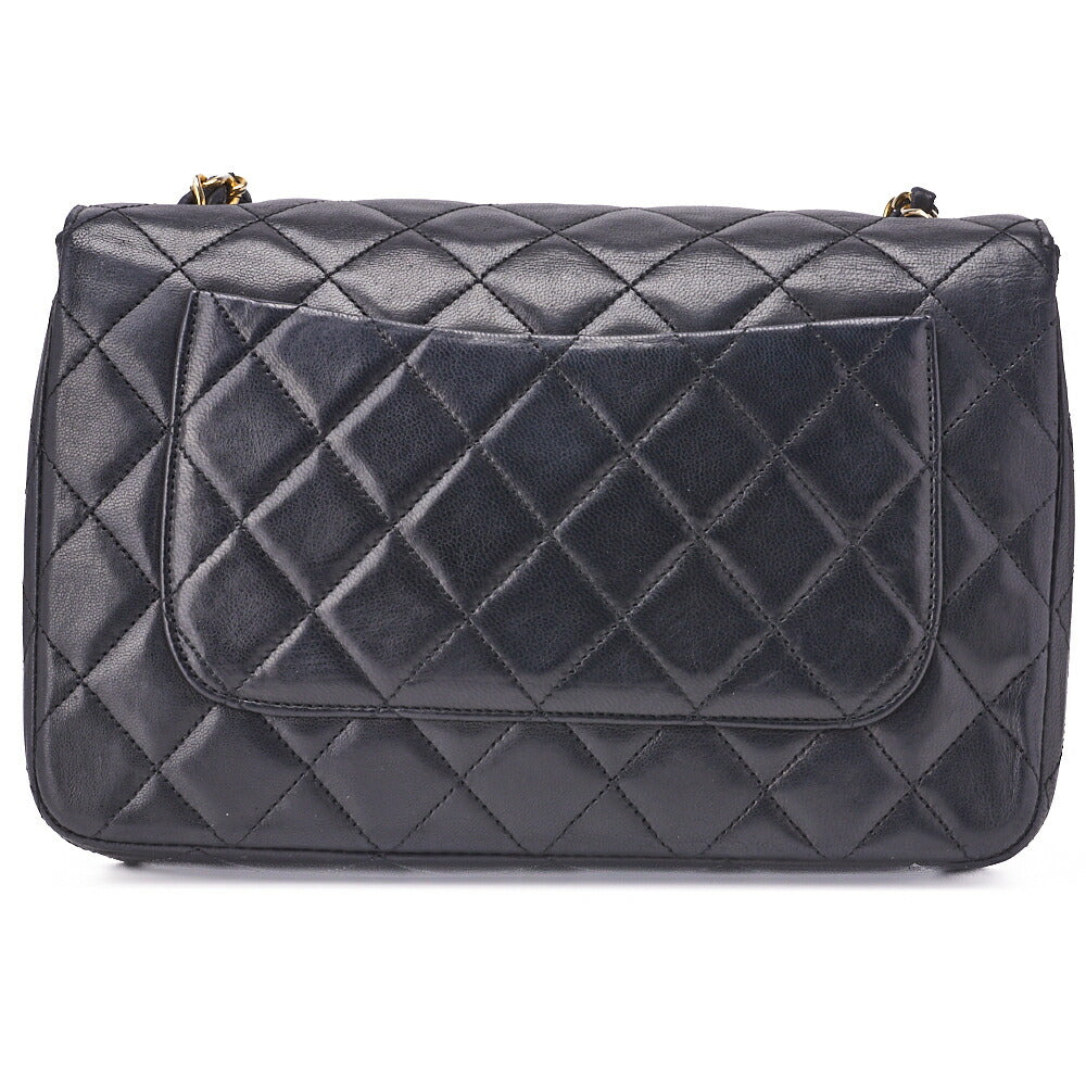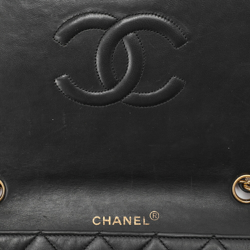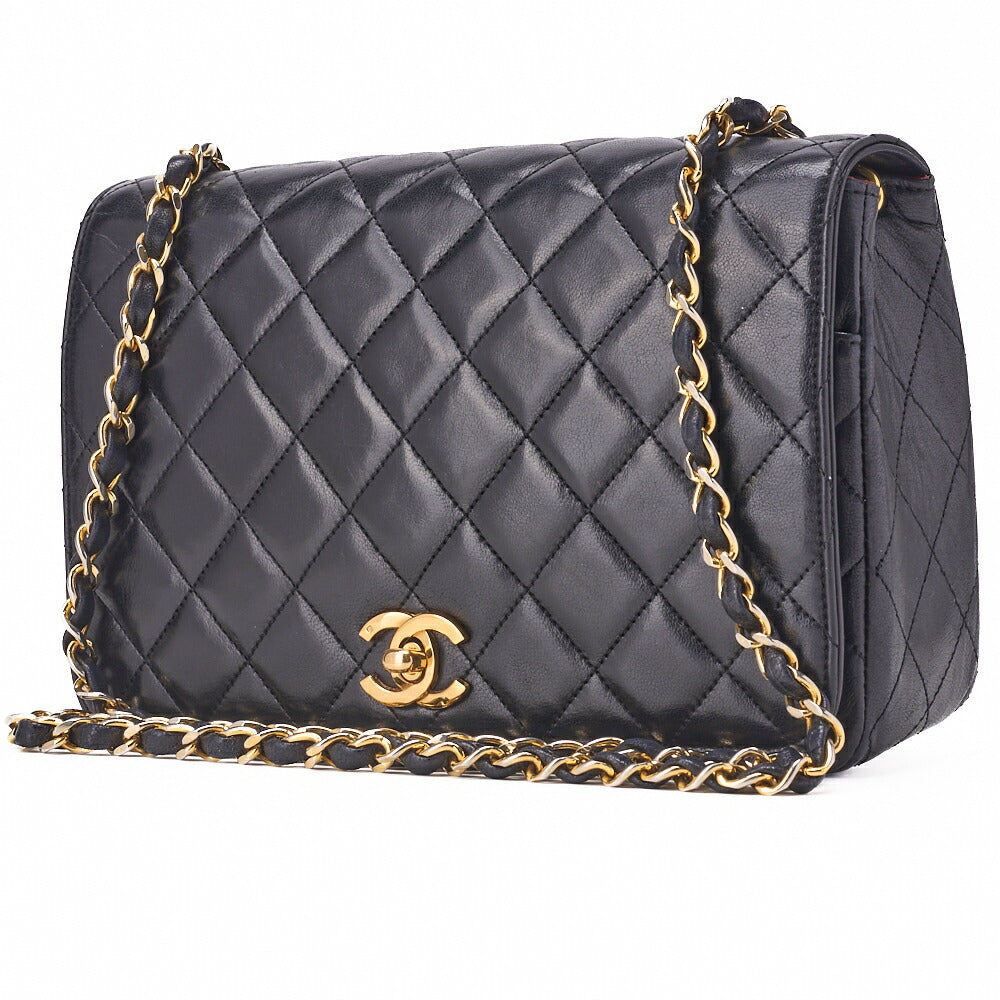 Elevate your accessory game with the CHANEL Chanel Shoulder Bag Matelasse Lambskin. This exquisite piece features a striking black lambskin exterior complemented by luxurious gold metal fittings, making it an essential addition to your wardrobe.