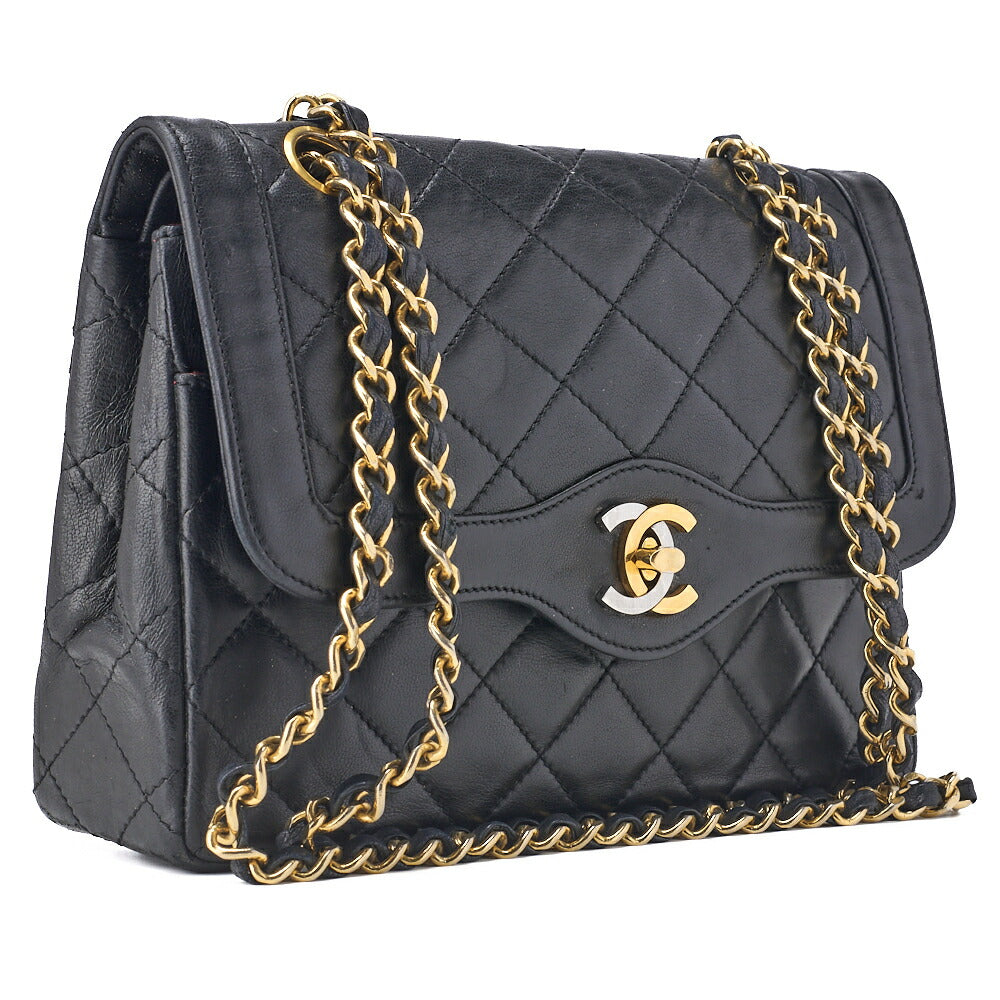 Pre-Owned Shoulder Bag Matelasse Lambskin Black Gold-Tone Hardware Pre-Owned