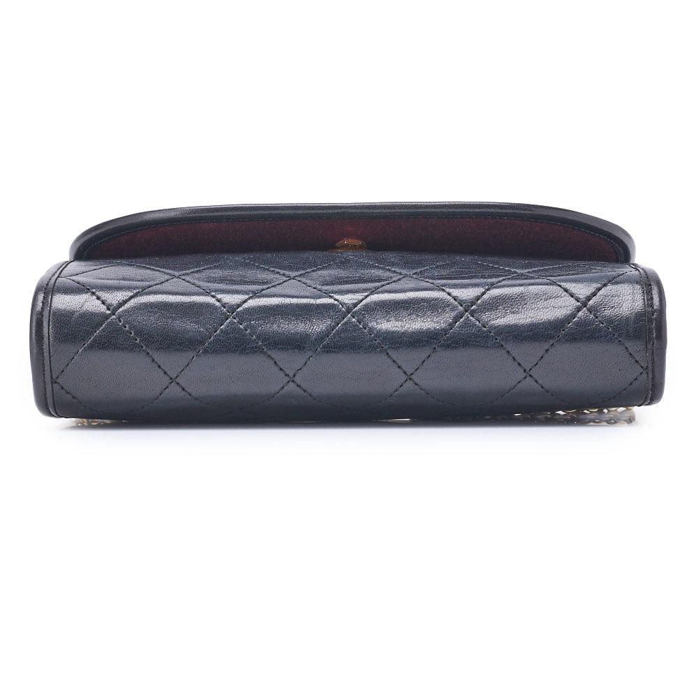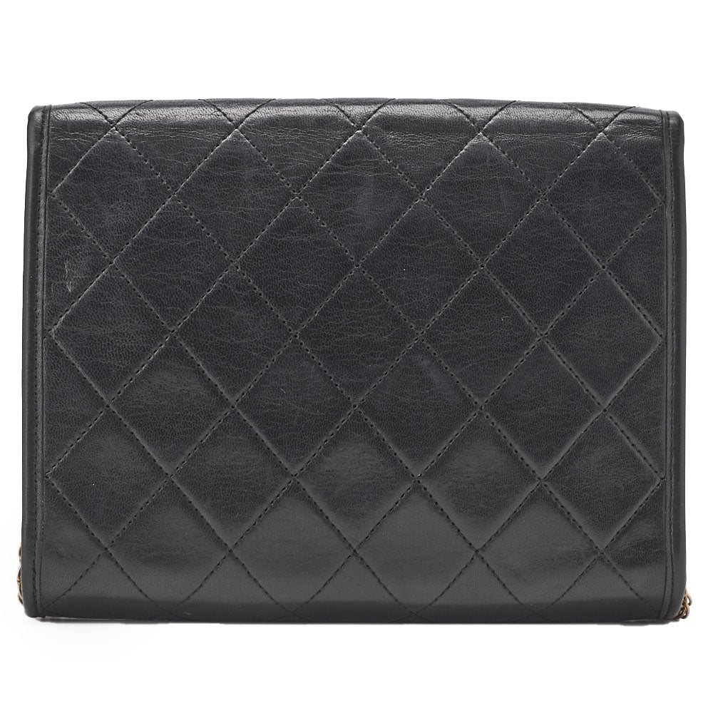 Pre-Owned Shoulder Bag Matelasse Push Lock Lambskin Black Gold-Tone Hardware Pre-Owned