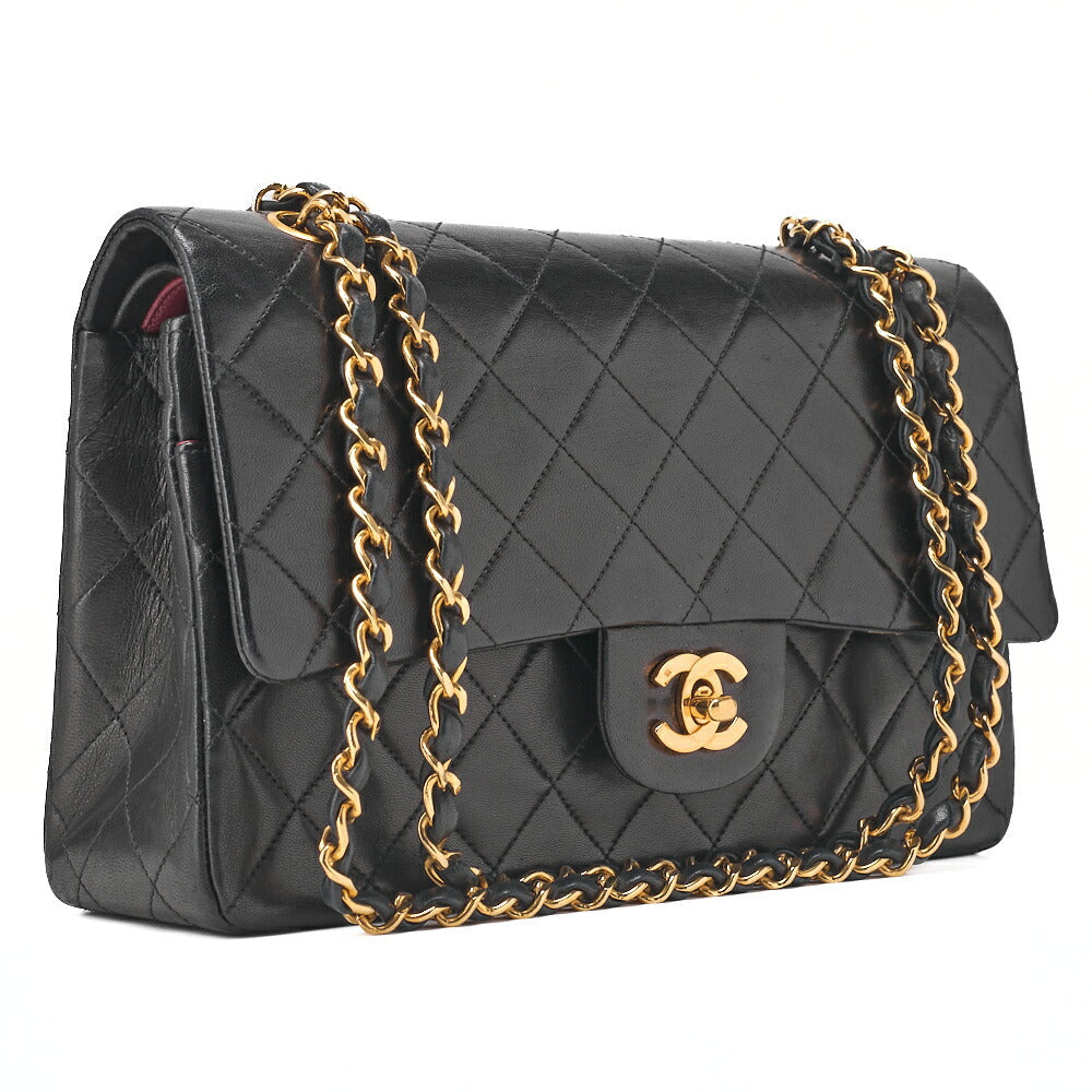 Pre-Owned Shoulder Bag Matlasse Double Flap 25cm Chain Shoulder Lambskin Black Gold-Tone Hardware, Pre-Owned