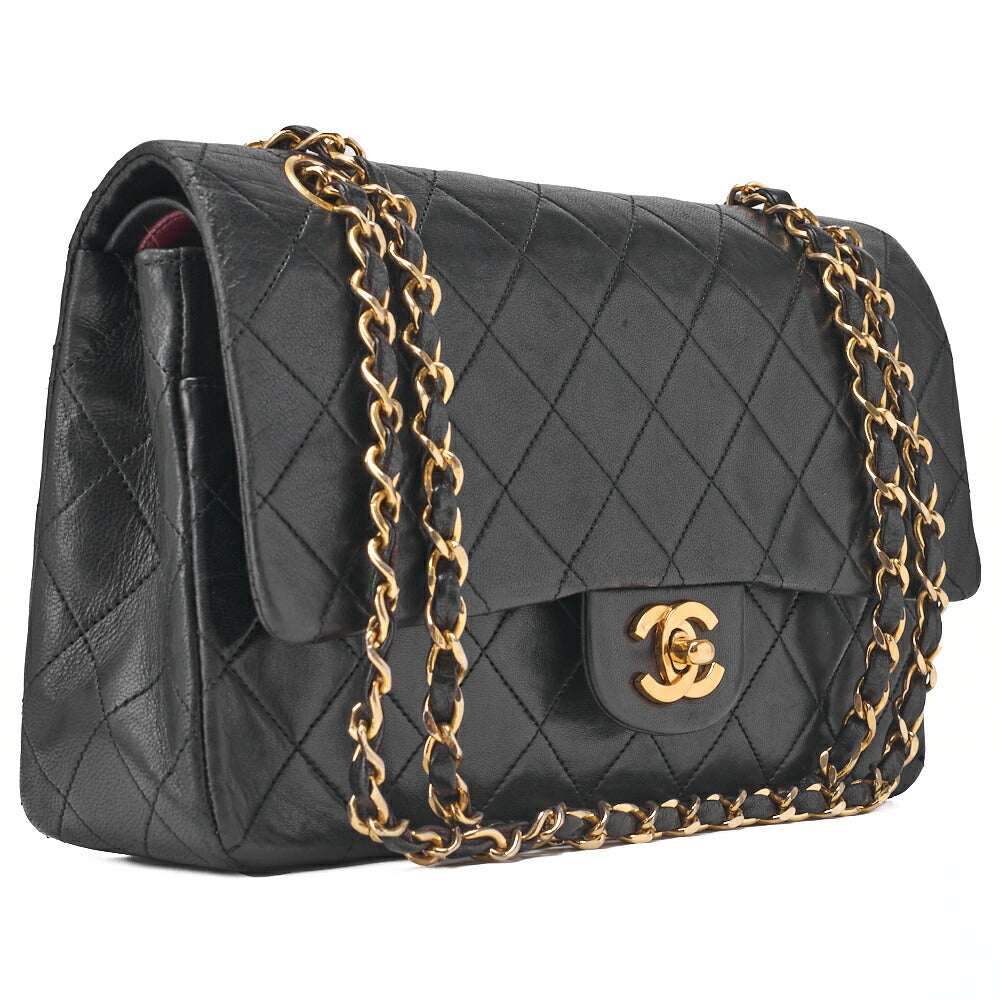 Pre-Owned Shoulder Bag Matlasse Double Flap 25cm Chain Shoulder Lambskin Black Gold Gold-Tone Hardware, Pre-Owned