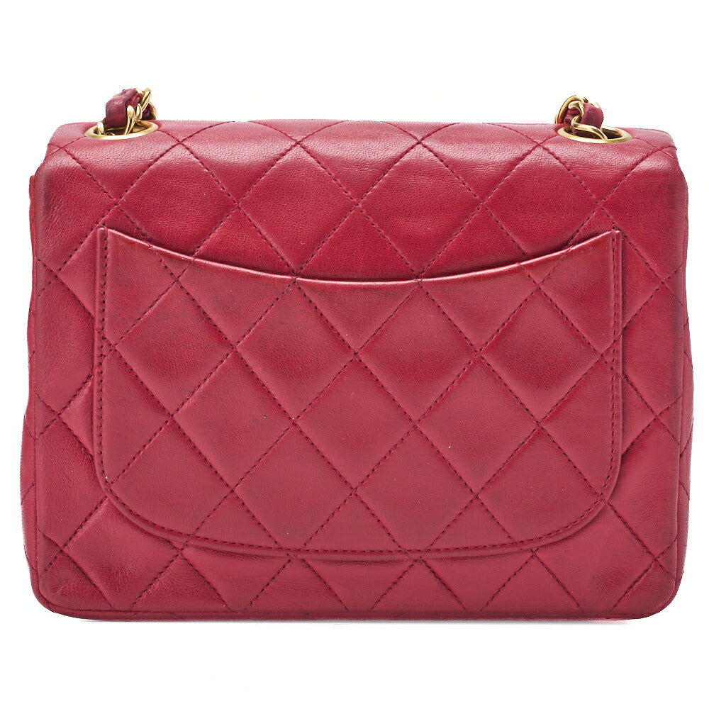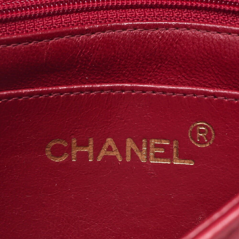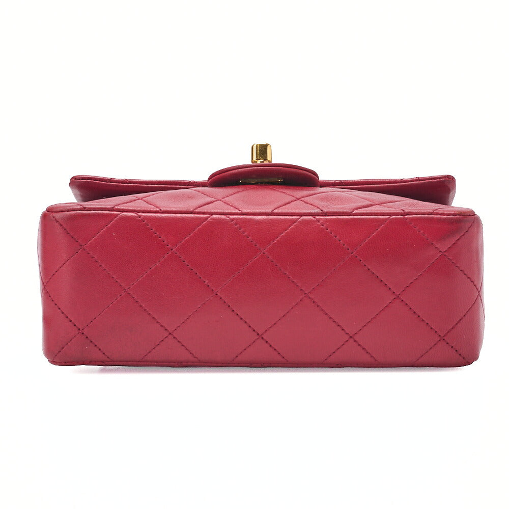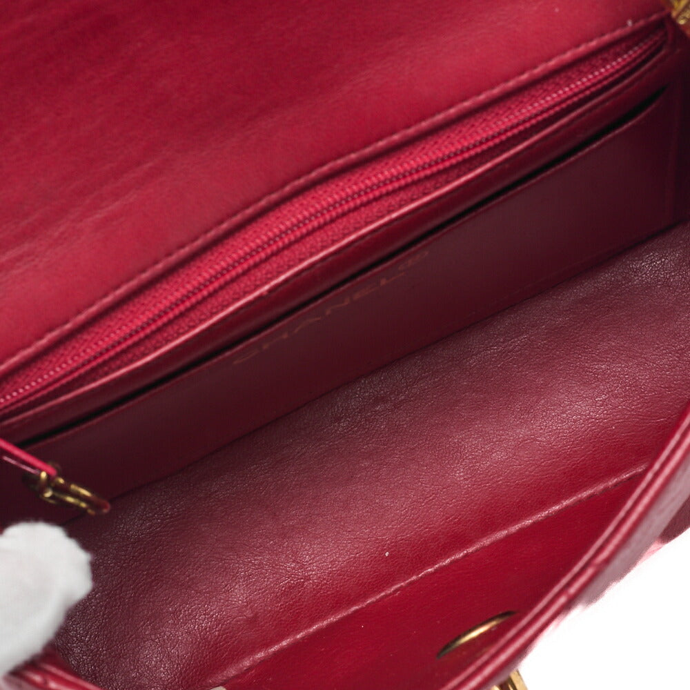 Pre-Owned Shoulder Bag Mini Matelasse Lambskin Red Gold-Tone Hardware Pre-Owned
