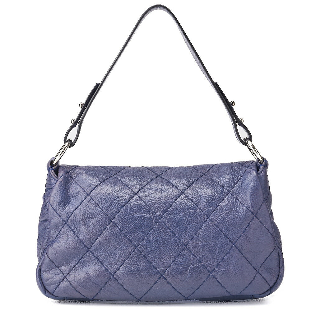 Pre-Owned Shoulder Bag Matelasse Leather Navy Silver-Tone Hardware Pre-Owned