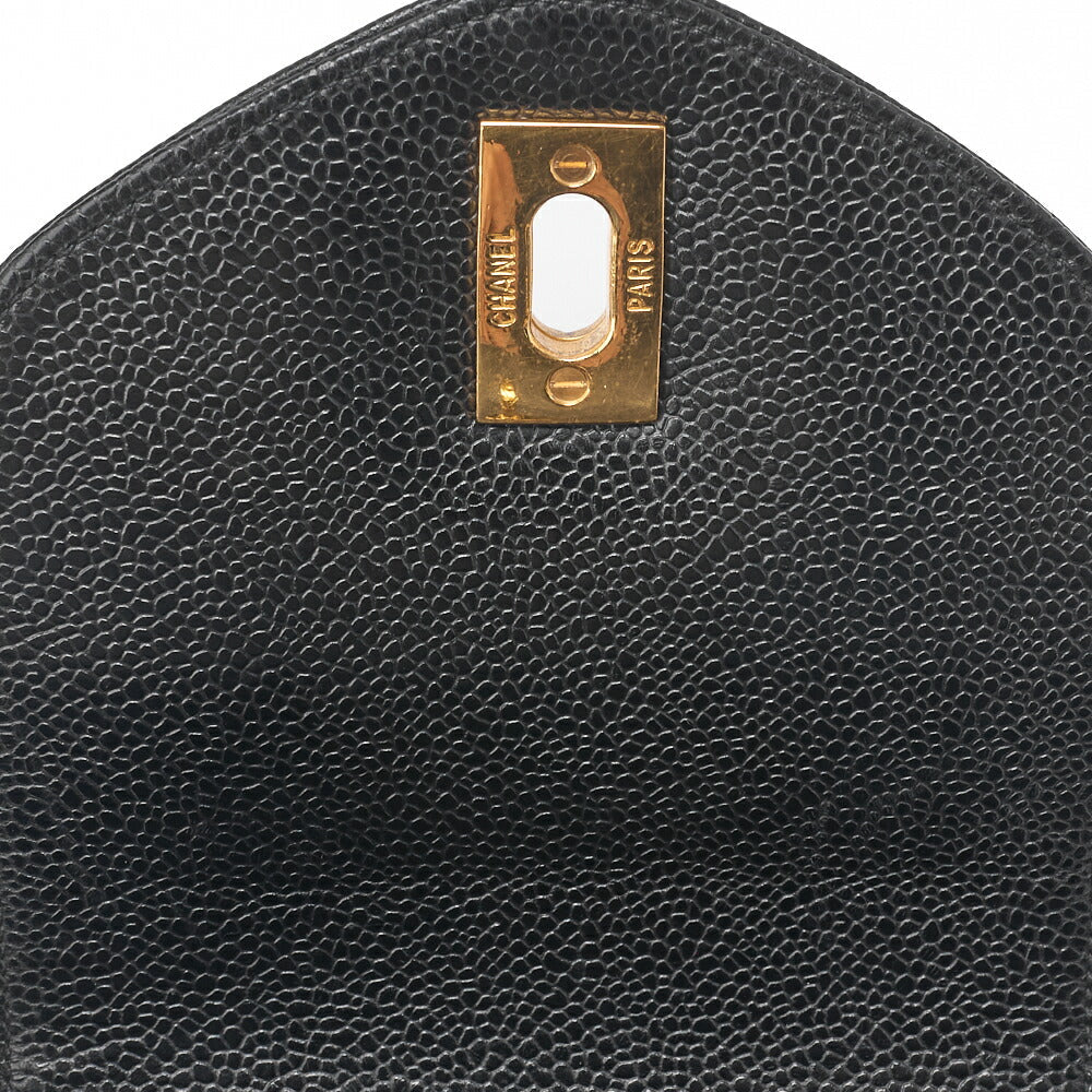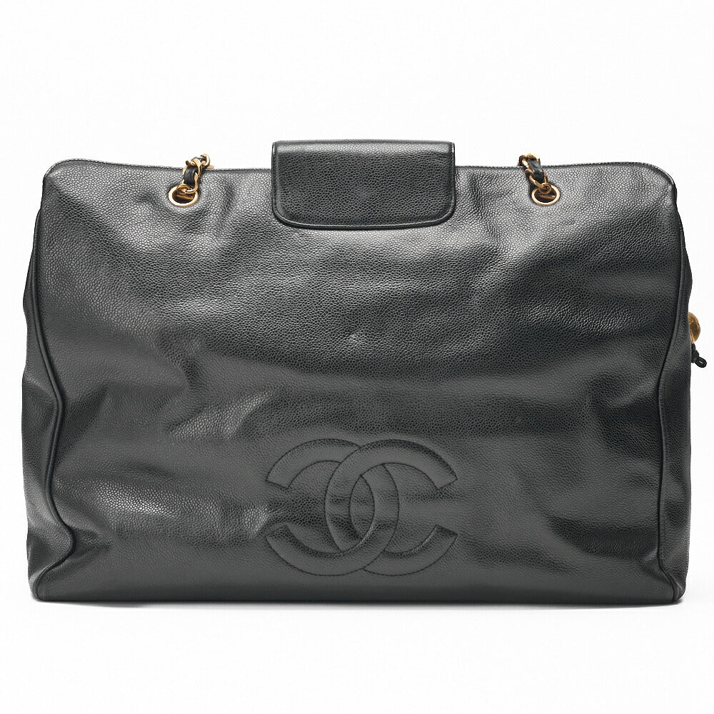 Pre-Owned Shoulder Bag Supermodel Coco Mark Deca Coco Double Chain Shoulder Caviar Skin Black Gold-Tone Hardware Pre-Owned