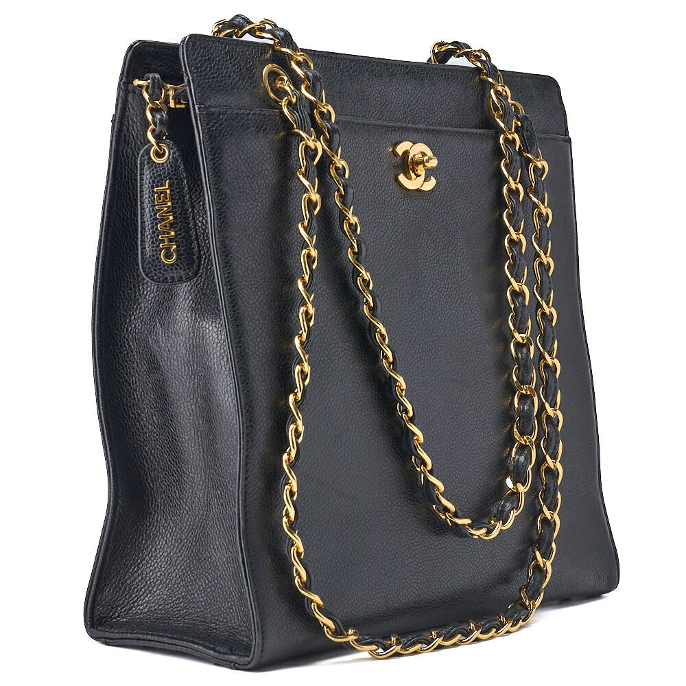 Elevate your style with the luxurious CHANEL Chanel Shoulder Bag Tote, crafted from exquisite Caviar Skin in a timeless black hue. This iconic piece features the signature Coco Mark and double chain design, making it an essential accessory for the modern woman.