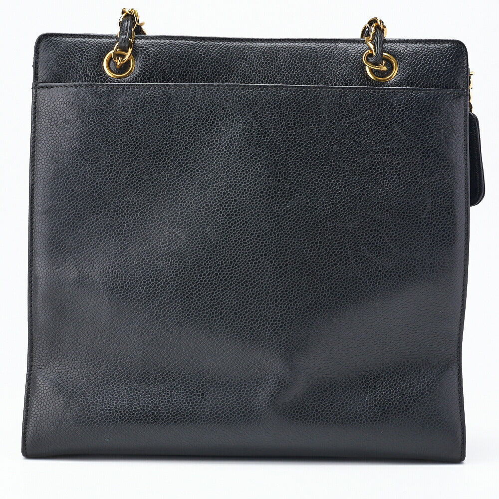 Pre-Owned Shoulder Tote Bag Coco Mark, Caviar Skin, Black, Gold-Tone Hardware, Pre-Owned