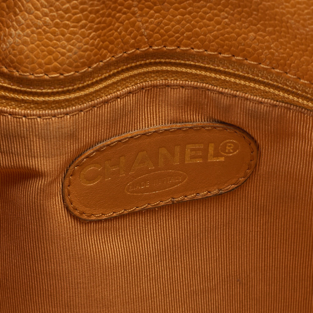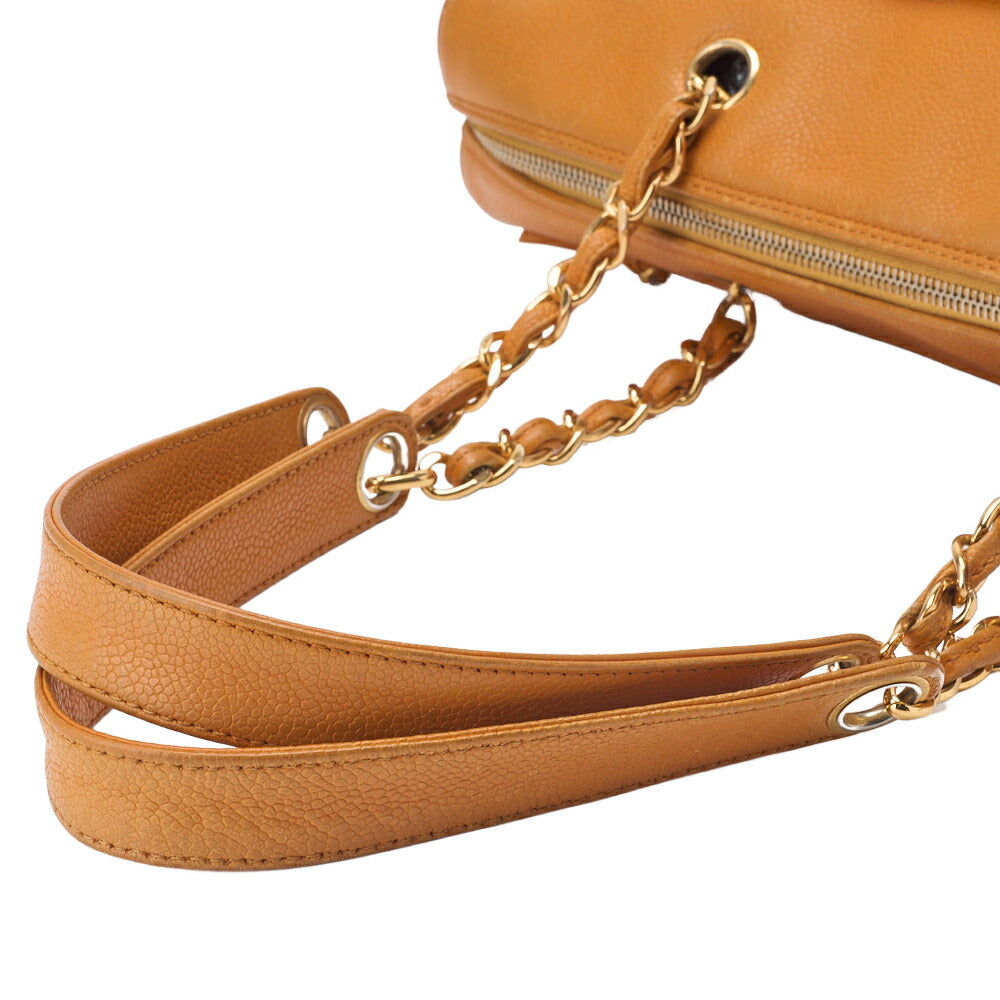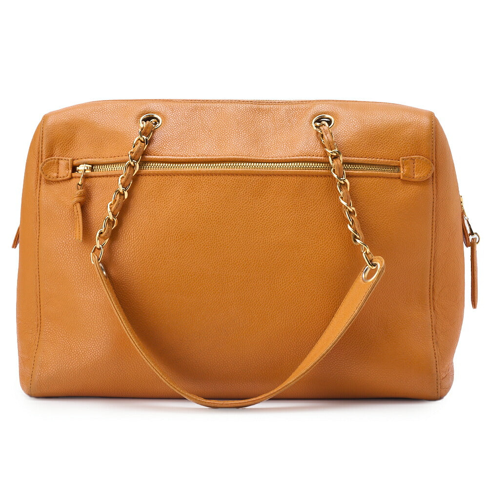 Pre-Owned Shoulder Bag Tote Bag Coco Mark Double Chain Shoulder Caviar Skin Orange Gold-Tone Hardware Pre-Owned