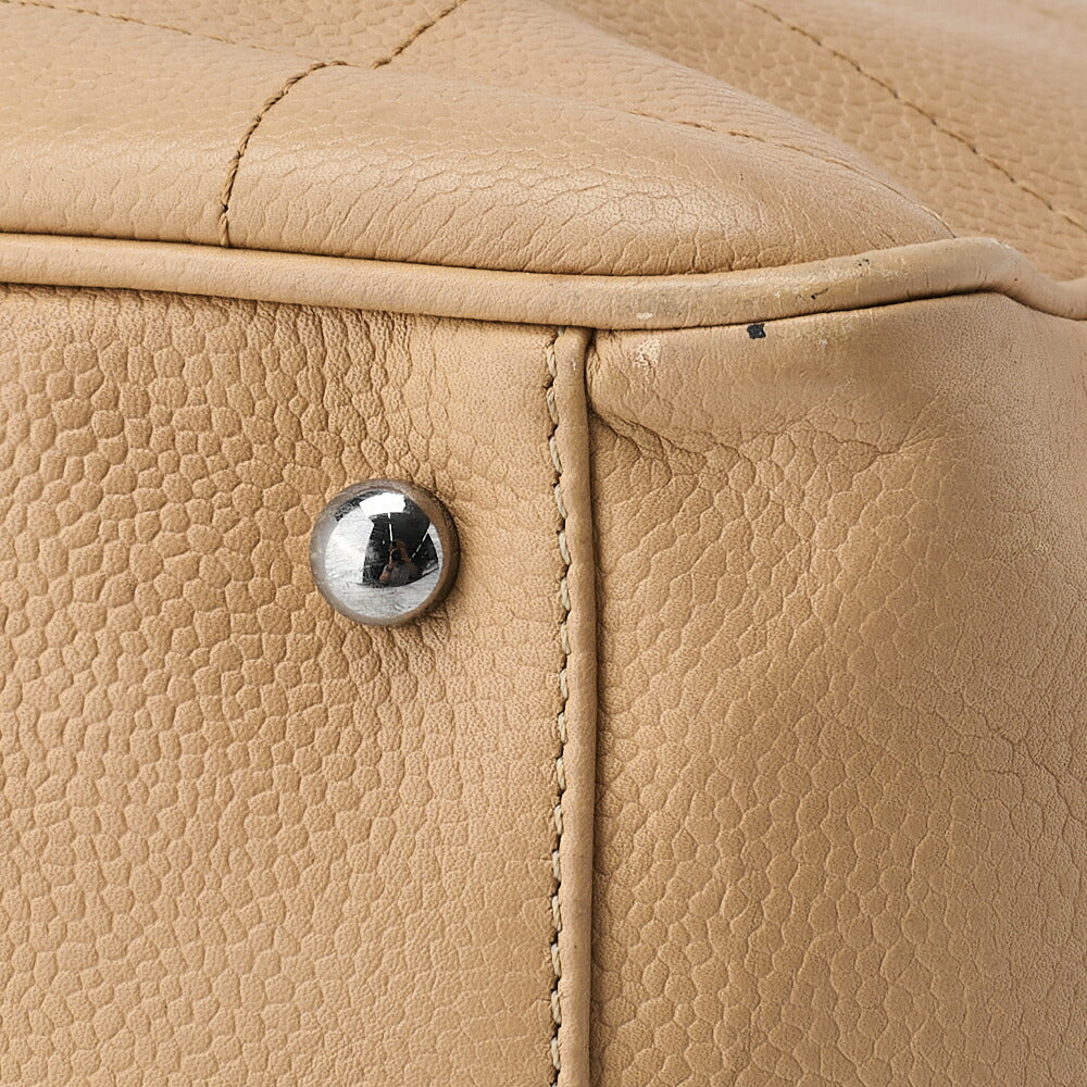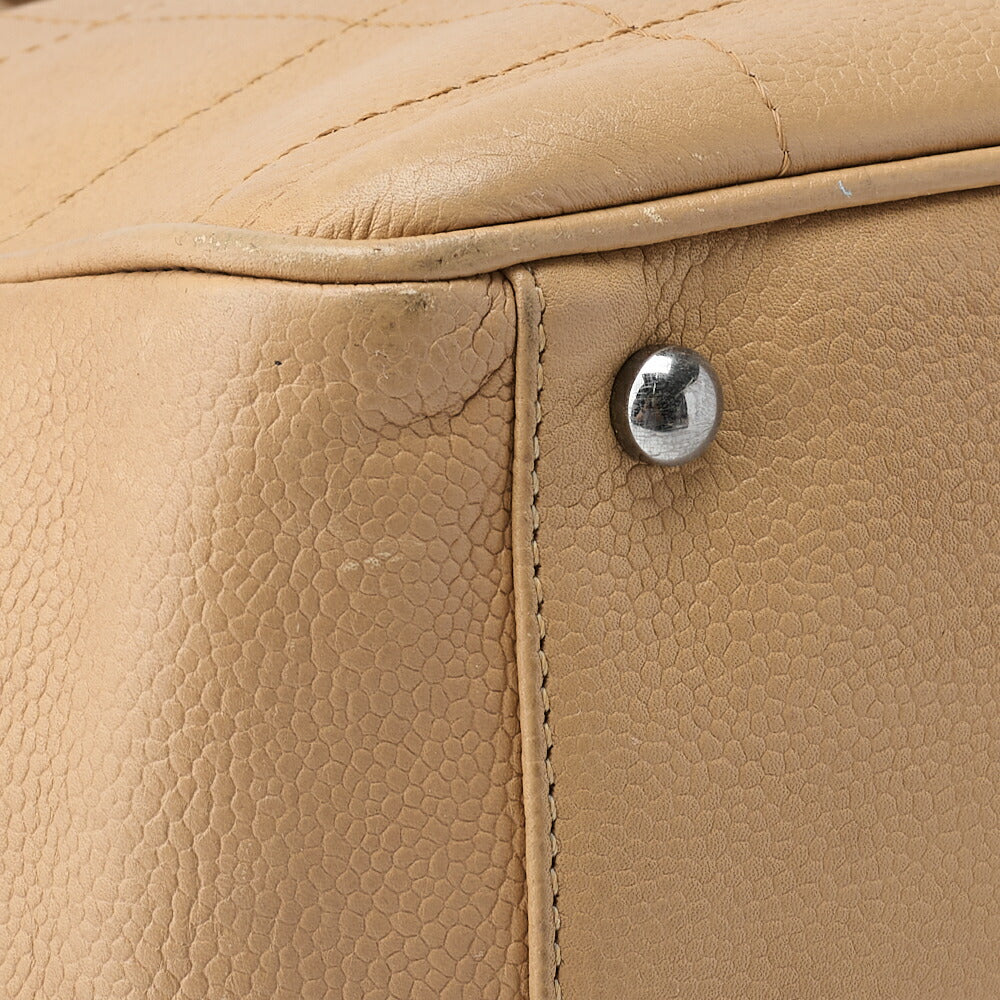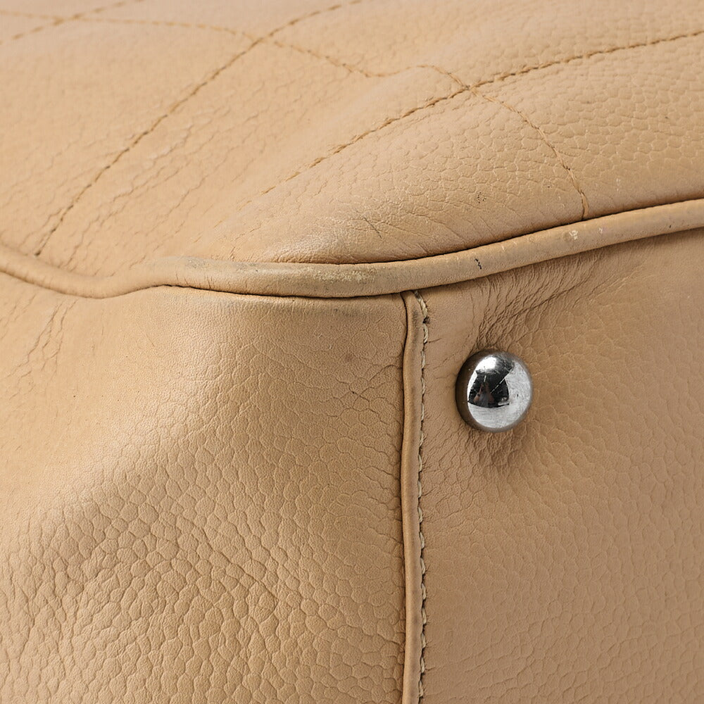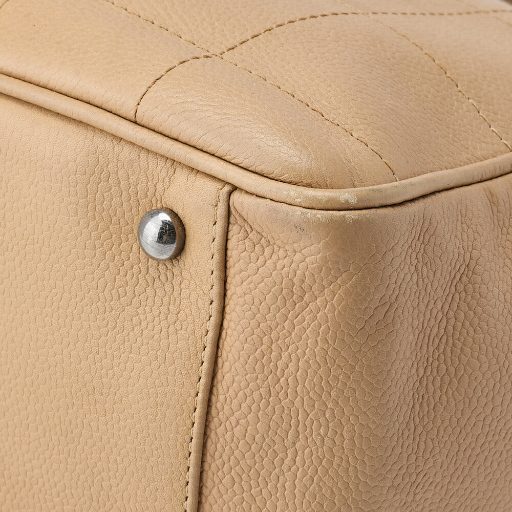 Pre-Owned Shoulder Tote Bag Choco Bar Logo Mark Caviar Skin Beige Silver-Tone Hardware Pre-Owned