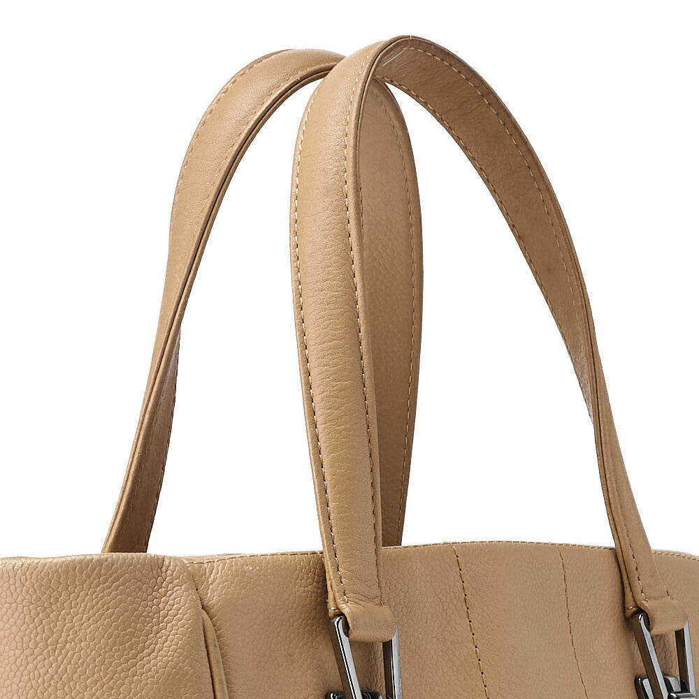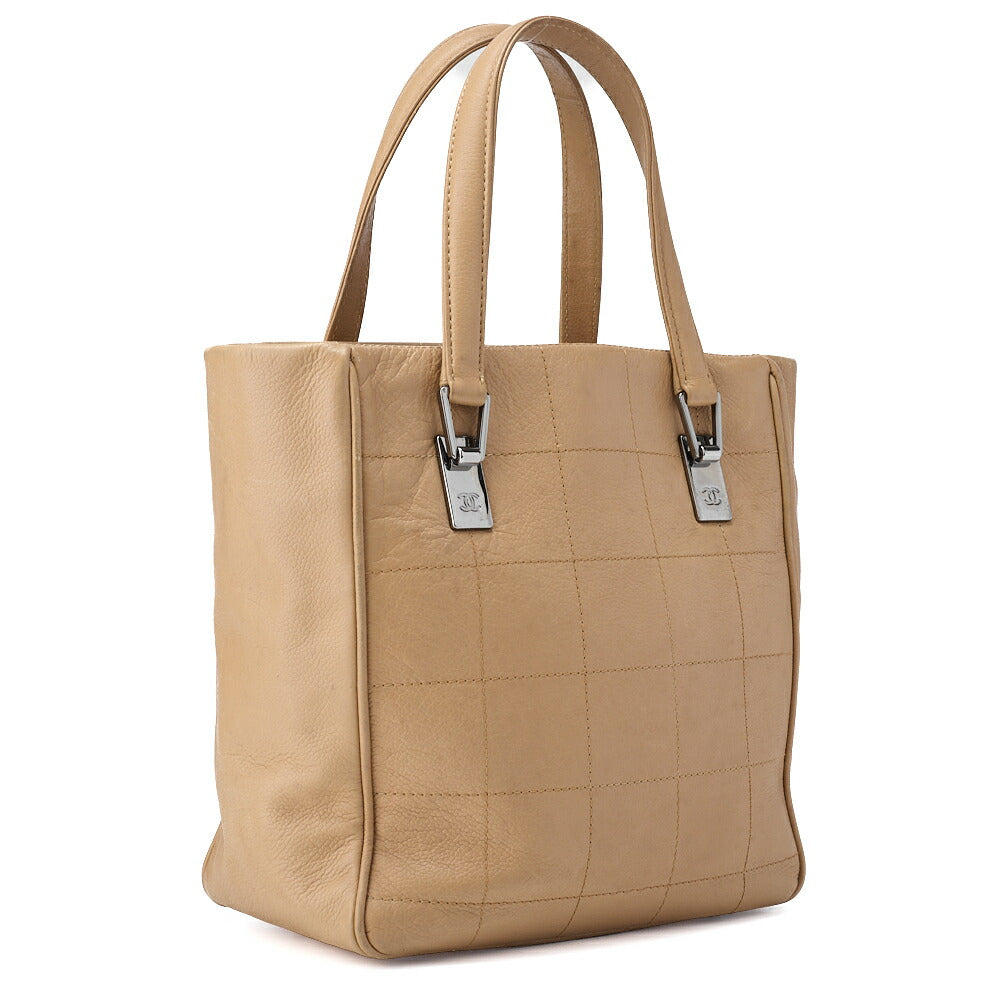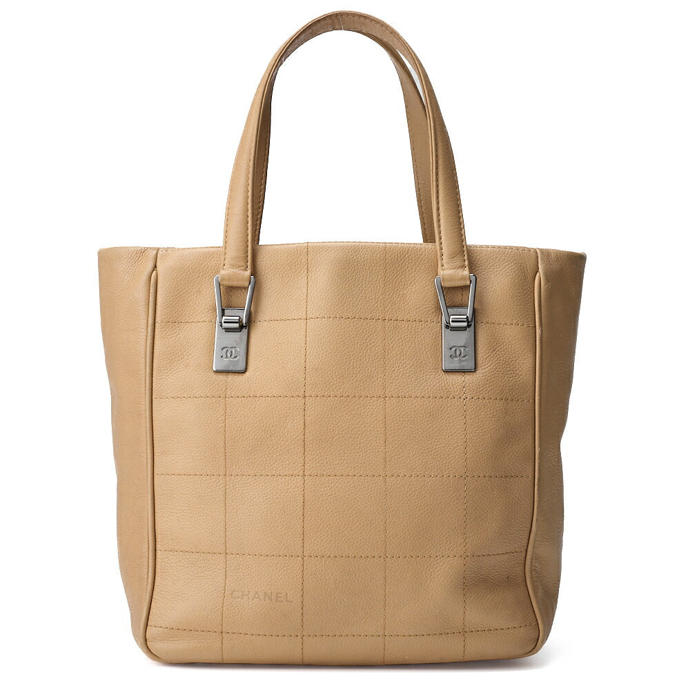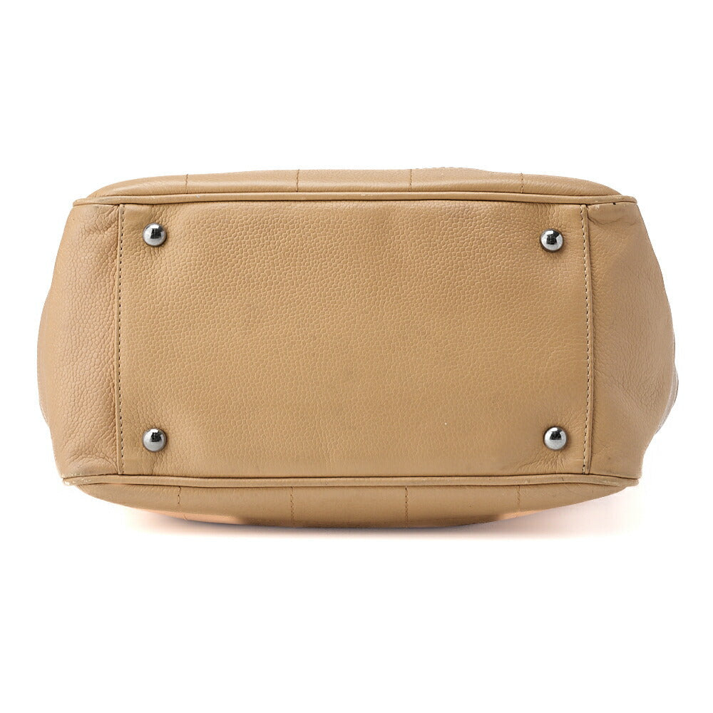 Pre-Owned Shoulder Tote Bag Choco Bar Logo Mark Caviar Skin Beige Silver-Tone Hardware Pre-Owned