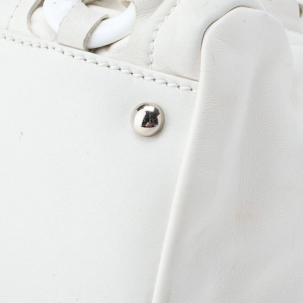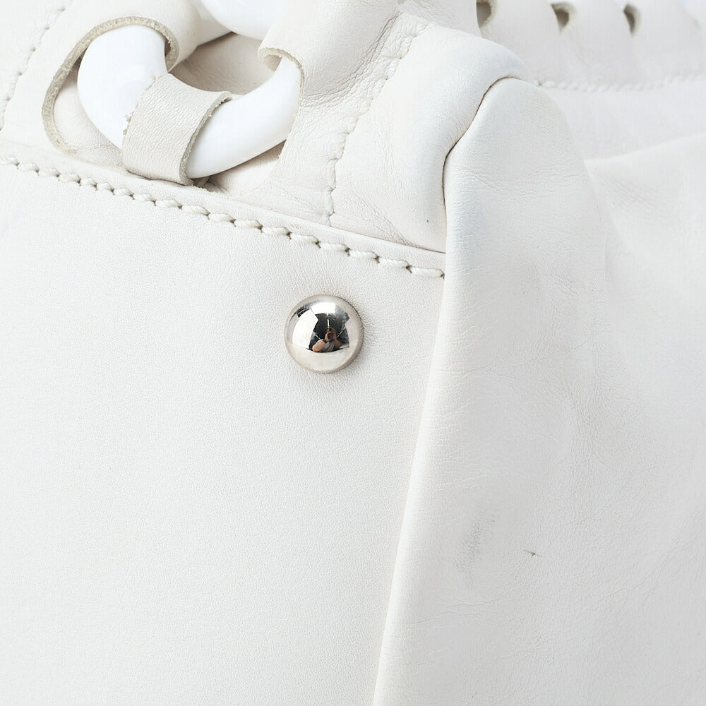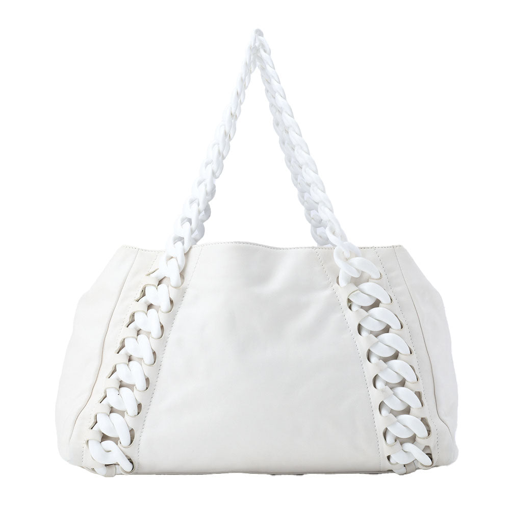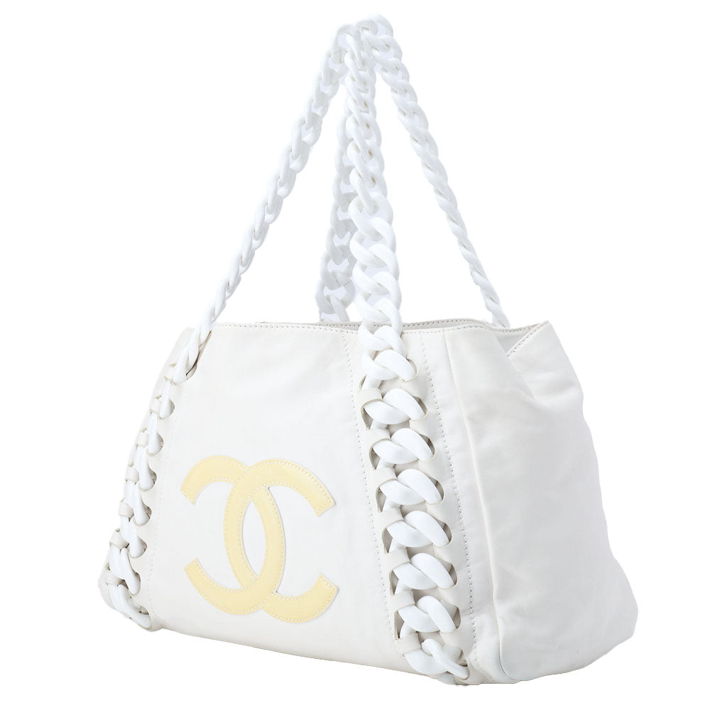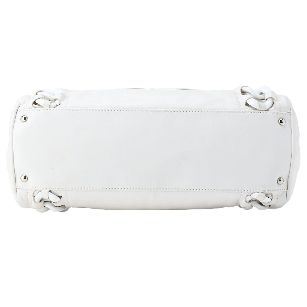 Pre-Owned Shoulder Tote Bag Coco Mark Plastic Chain Shoulder Lambskin White Gold-Tone Hardware Pre-Owned