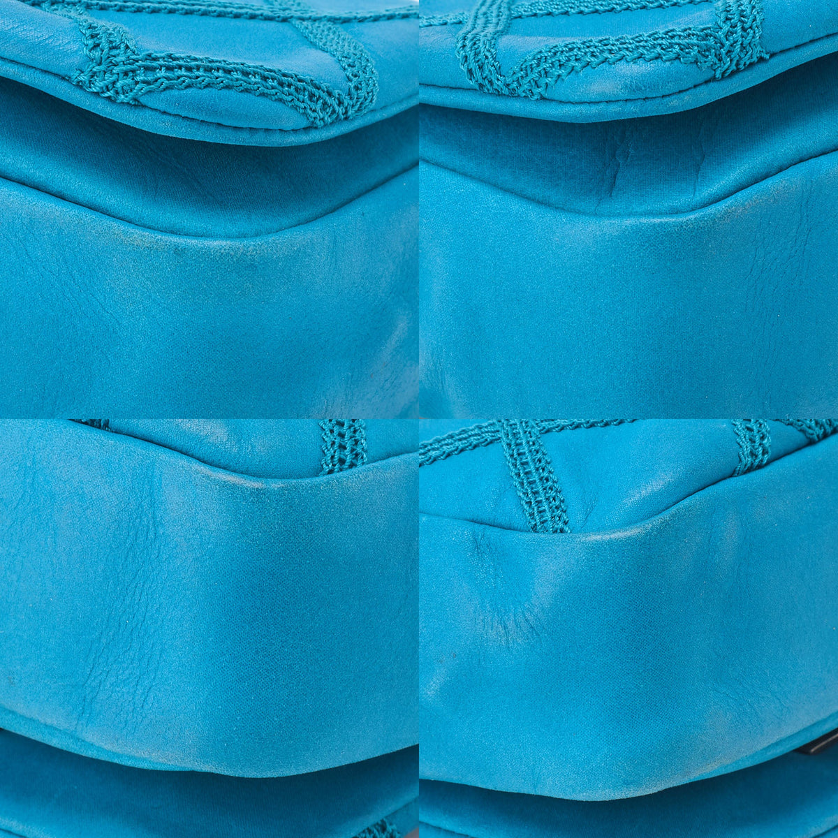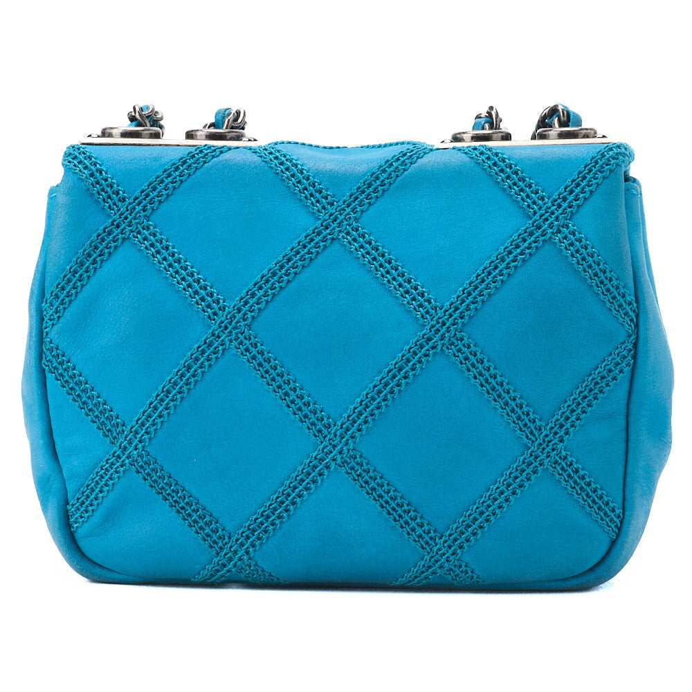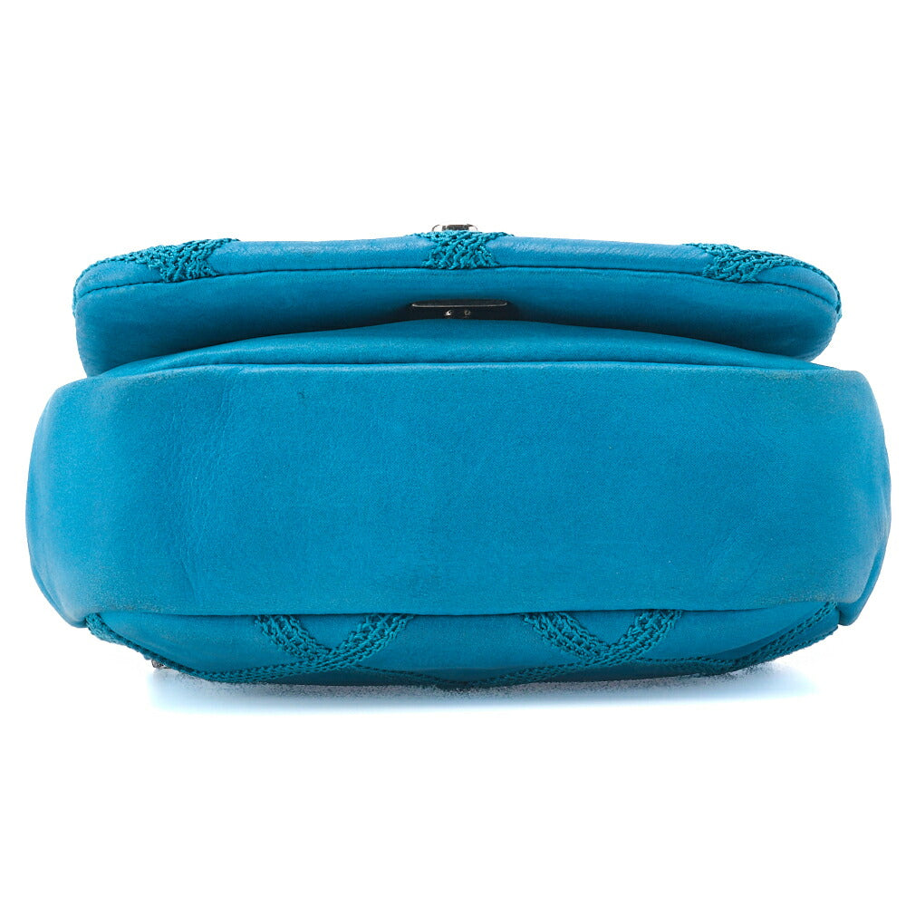 Pre-Owned Shoulder Tote Bag Matelasse Sparkle Leather Turquoise Blue Silver-Tone Hardware Pre-Owned