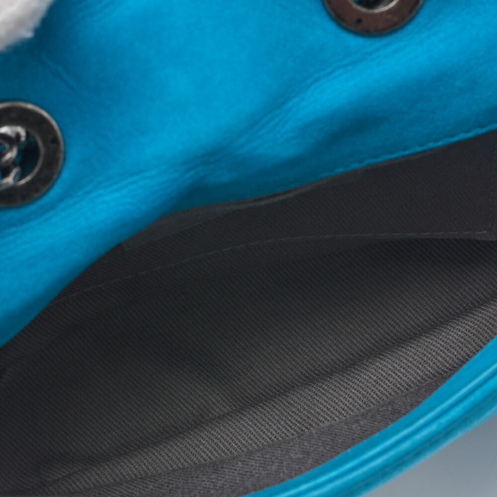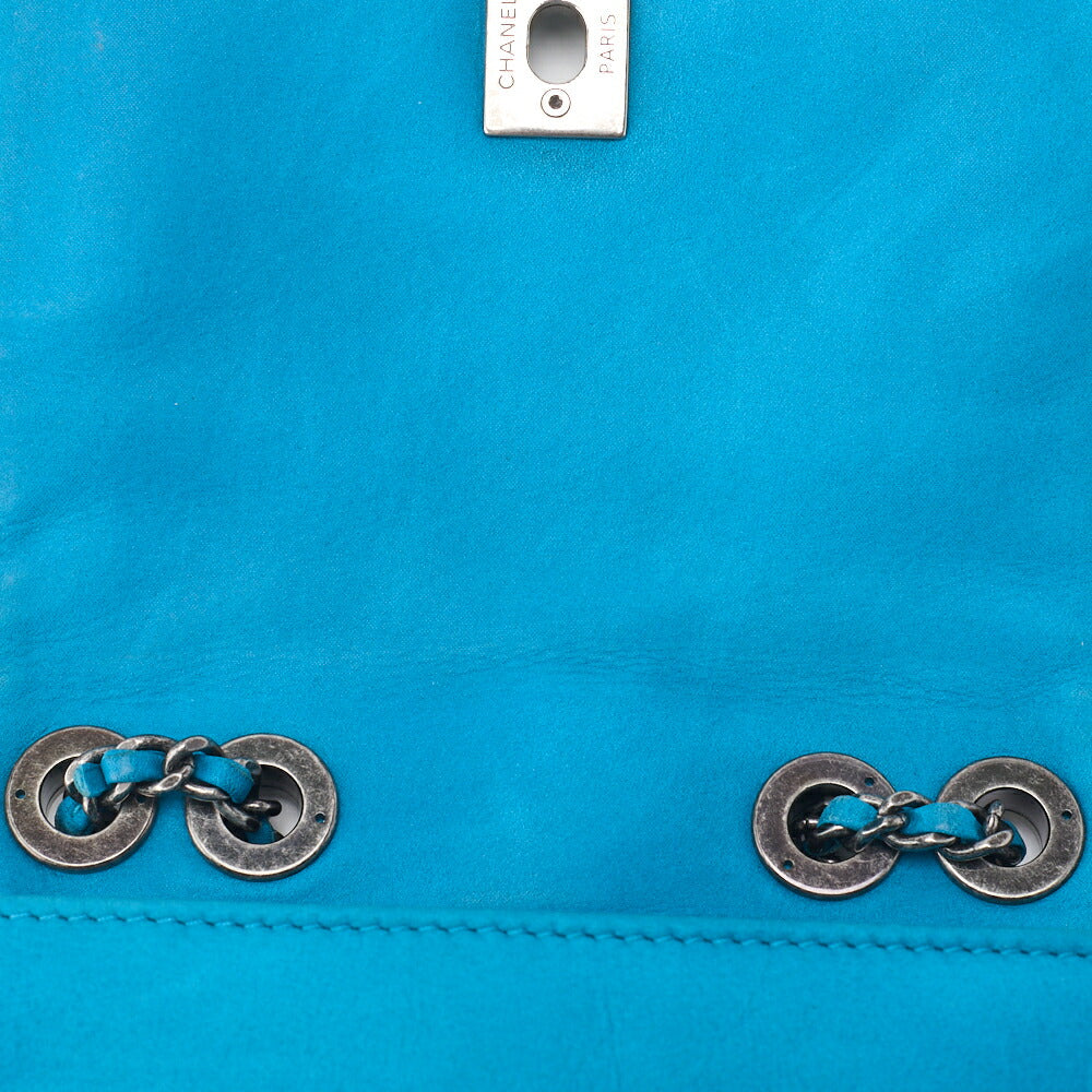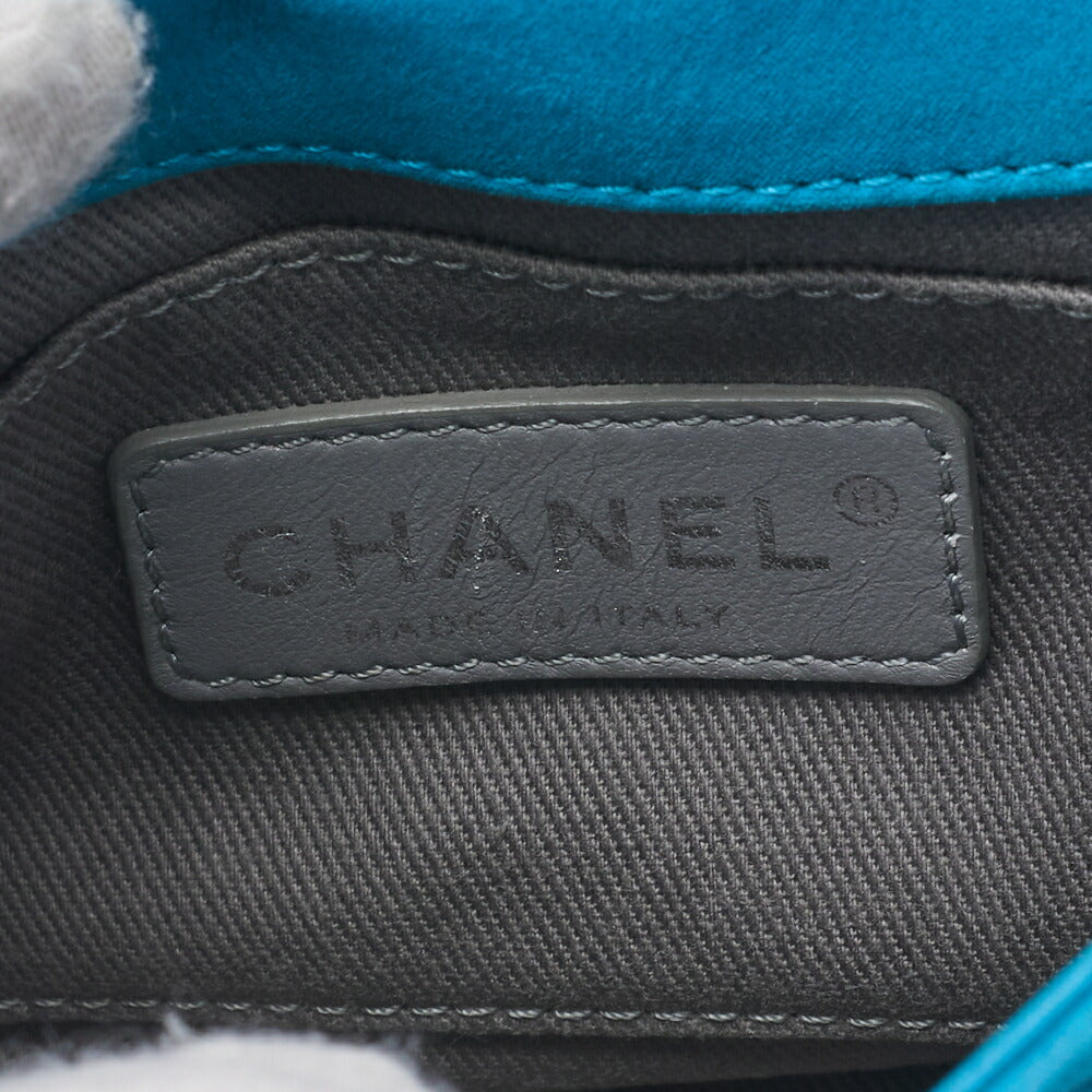 Indulge in the luxurious charm of the CHANEL Shoulder Bag Tote Bag Matelasse Single Flap crafted from exquisite sparkle leather. This stunning turquoise blue bag, adorned with silver metal fittings, is not just an accessory; it’s a statement piece that elevates any outfit.