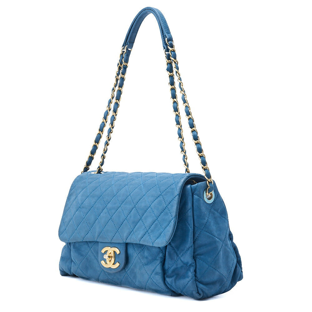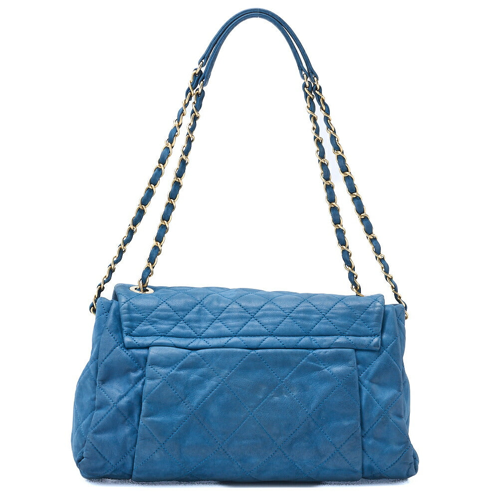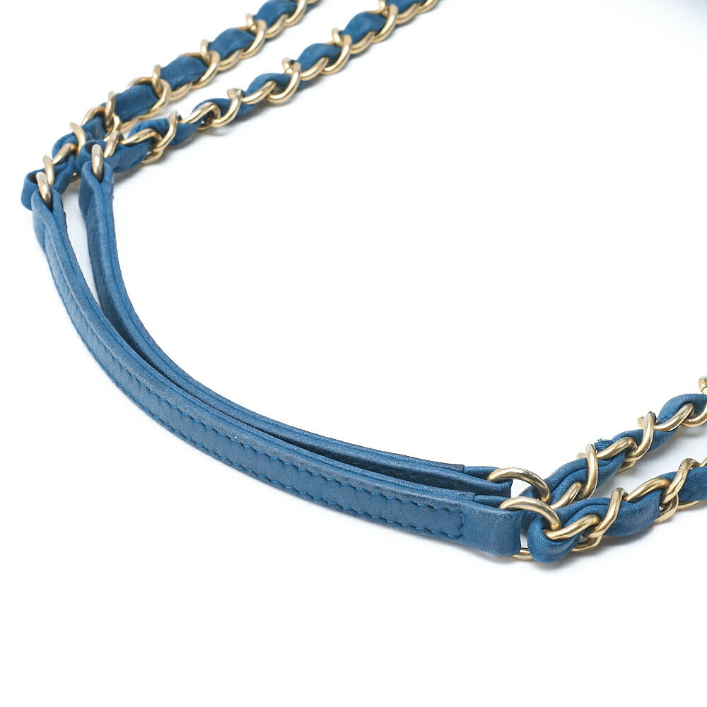 Pre-Owned Shoulder Bag Tote Bag Matelasse Sparkle Leather Blue Gold-Tone Hardware Pre-Owned