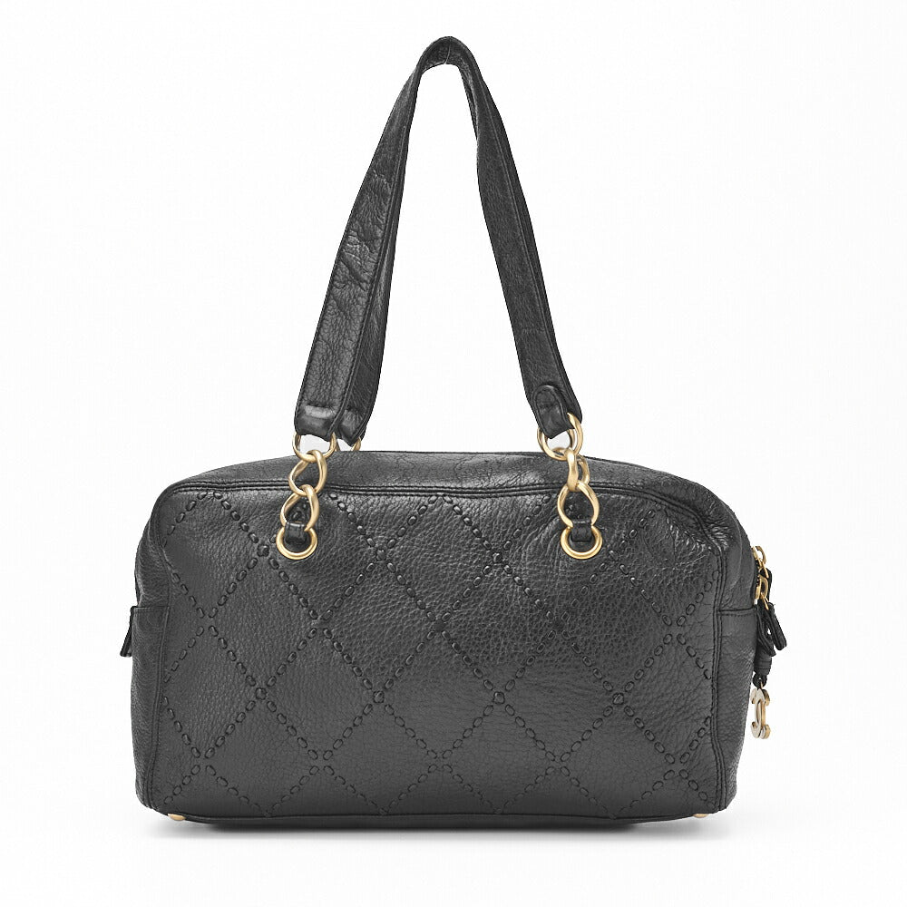 Pre-Owned Shoulder Bag Ultra Stitch Chain Tote Leather Black Gold-Tone Hardware Pre-Owned