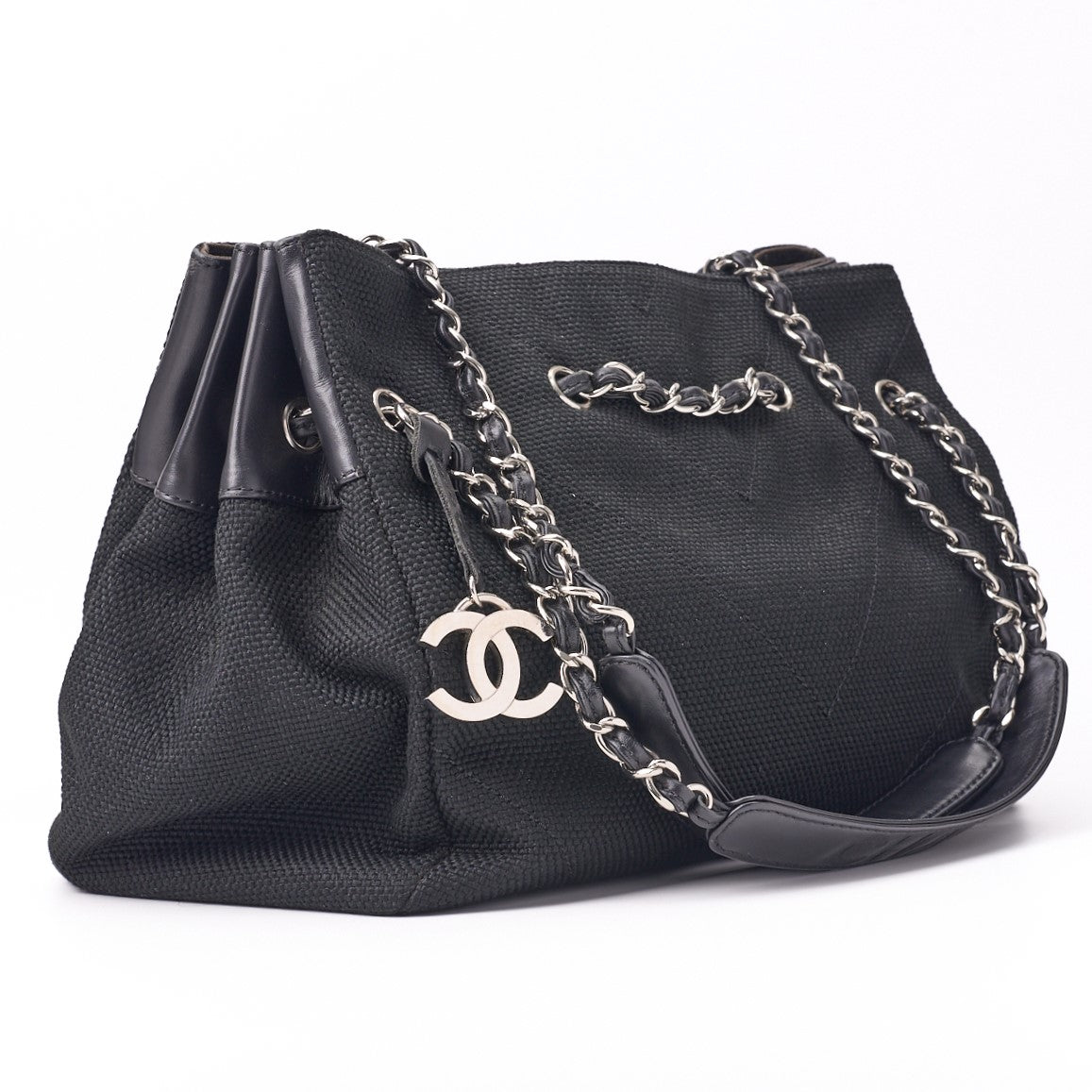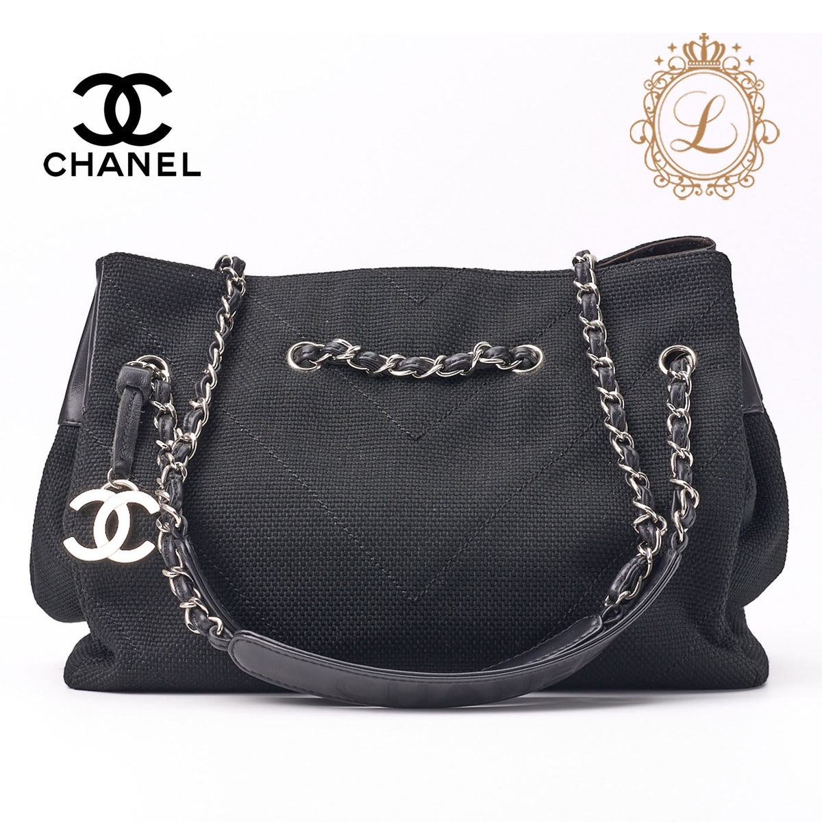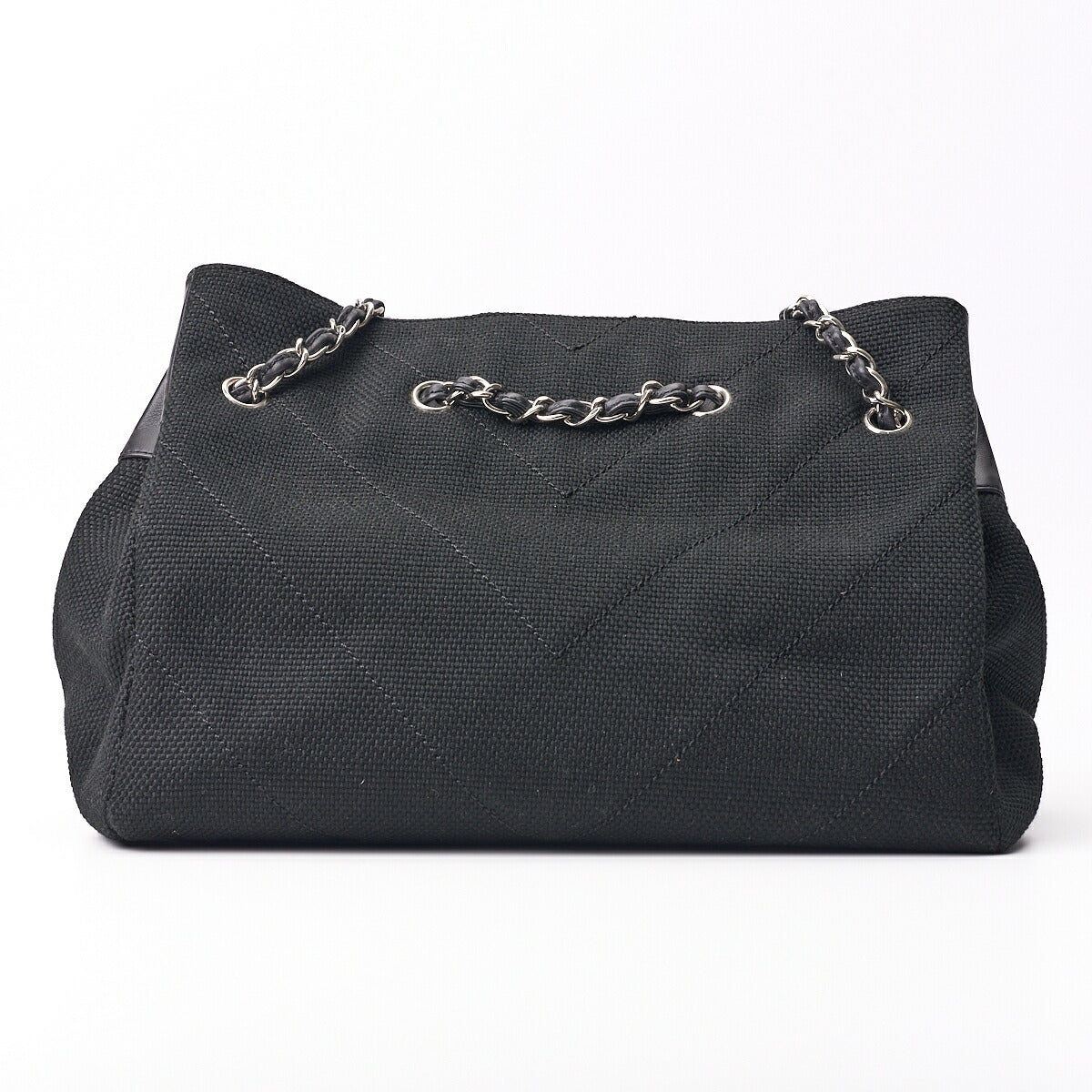 Pre-Owned Shoulder Bag, V Stitch, Coco Charm, Canvas, Black, Silver-Tone Hardware, Pre-Owned