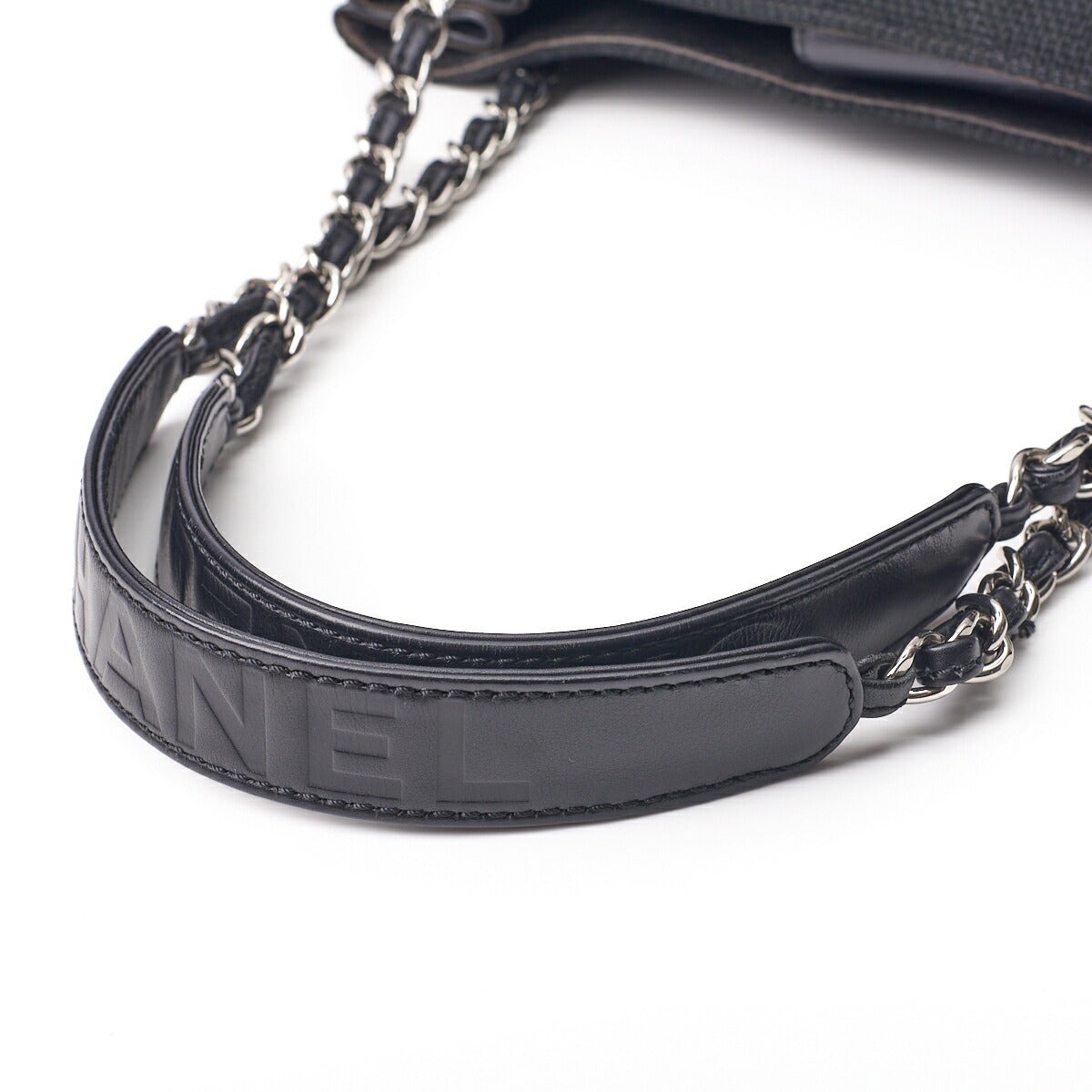 Introducing the CHANEL V Stitch with Coco Charm Chain Shoulder Bag, a stunning canvas masterpiece in sleek black with silver fittings, designed for the modern woman who appreciates luxury and practicality. This mini shoulder bag is not just a fashion statement; it embodies sophistication and versatility.