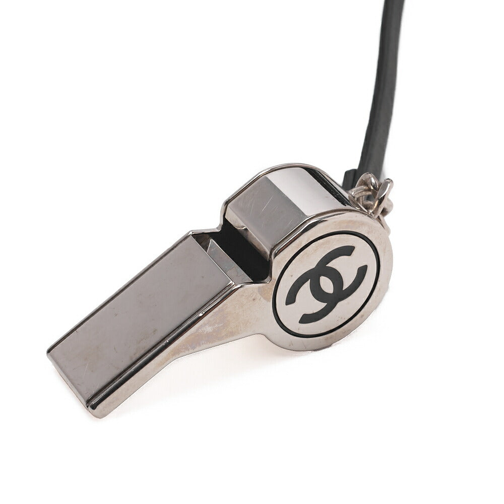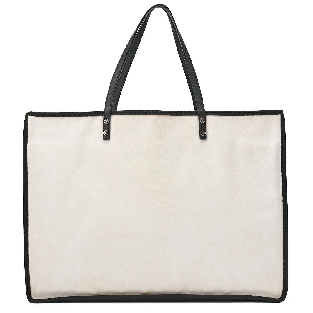 Pre-Owned Tote Bag Coco Mark Canvas with Whistle Charm White × Black Silver-Tone Hardware, Pre-Owned