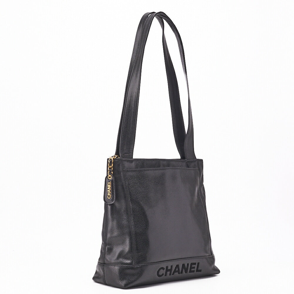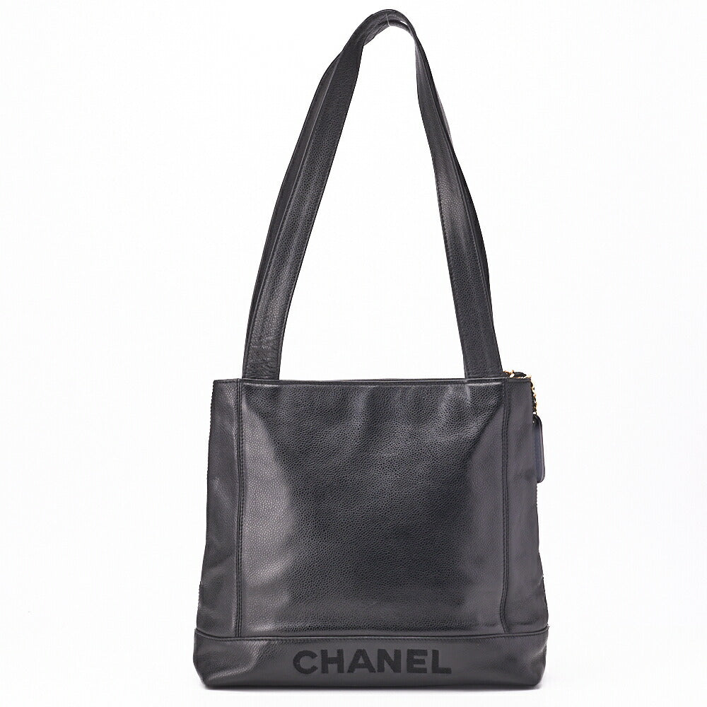 Pre-Owned Tote Bag Logo Mark Plate Charm Caviar Leather Black Gold-Tone Hardware Pre-Owned