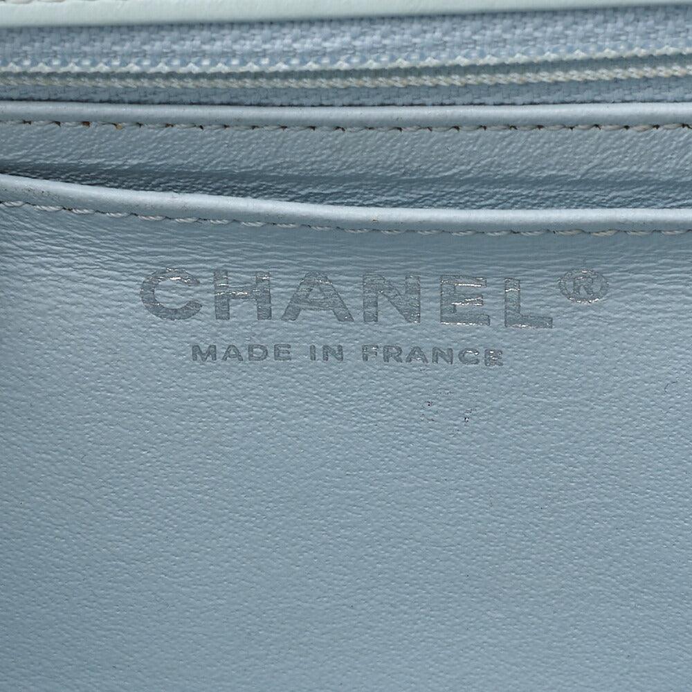 Introducing the CHANEL V Stitch 2.55 Lock Chain Shoulder Bag, an exquisite blend of luxury and functionality that elevates any outfit. Crafted from premium calfskin, this stunning mini shoulder bag in a captivating light blue hue features elegant silver fittings, making it a timeless addition to your collection.