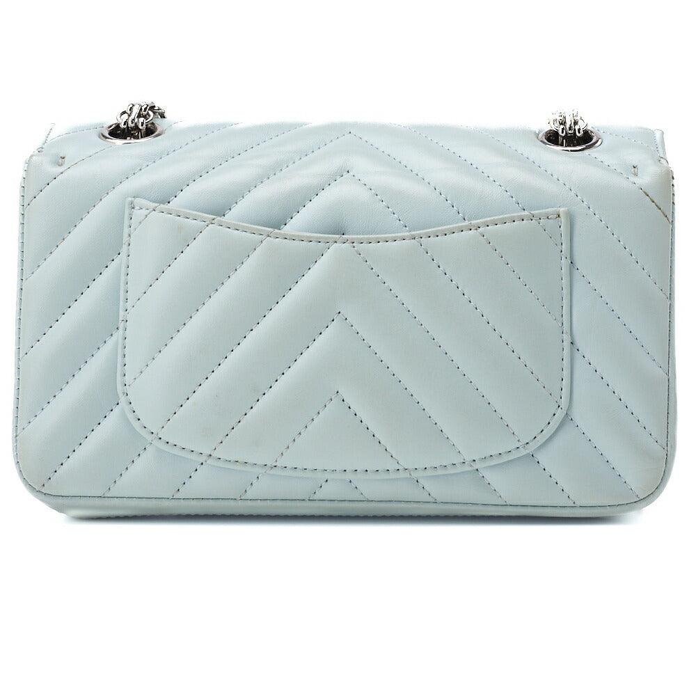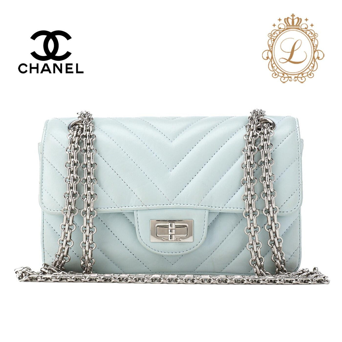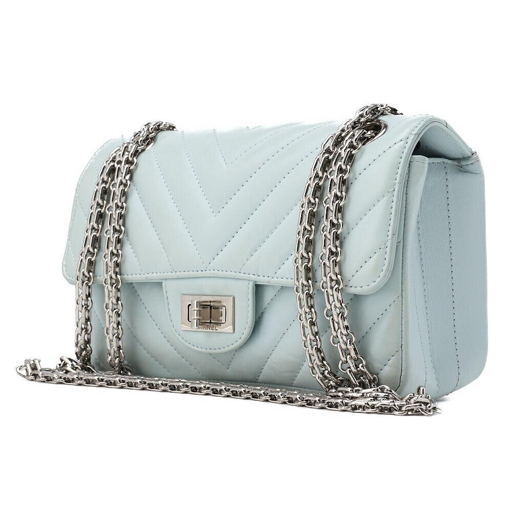 Pre-Owned Shoulder Bag, V Stitch 2.55 Lock Chain, Calfskin, Light Blue, Silver-Tone Hardware, Pre-Owned