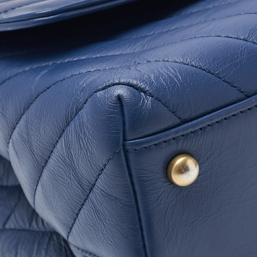 Pre-Owned 2WAY Handbag V Stitch Coco Handle Calf Blue Gold-Tone Hardware Pre-Owned