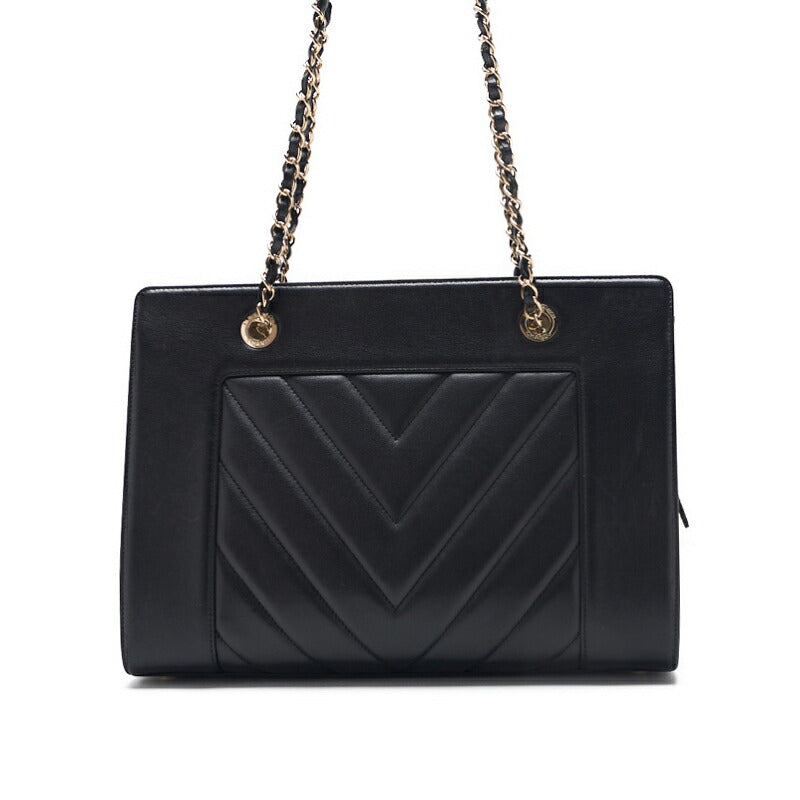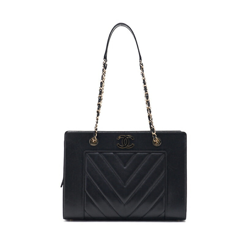 Pre-Owned Shoulder Bag, V-Stitch Deca Coco, Double Chain, Lambskin, Black, Gold-Tone Hardware, Pre-Owned