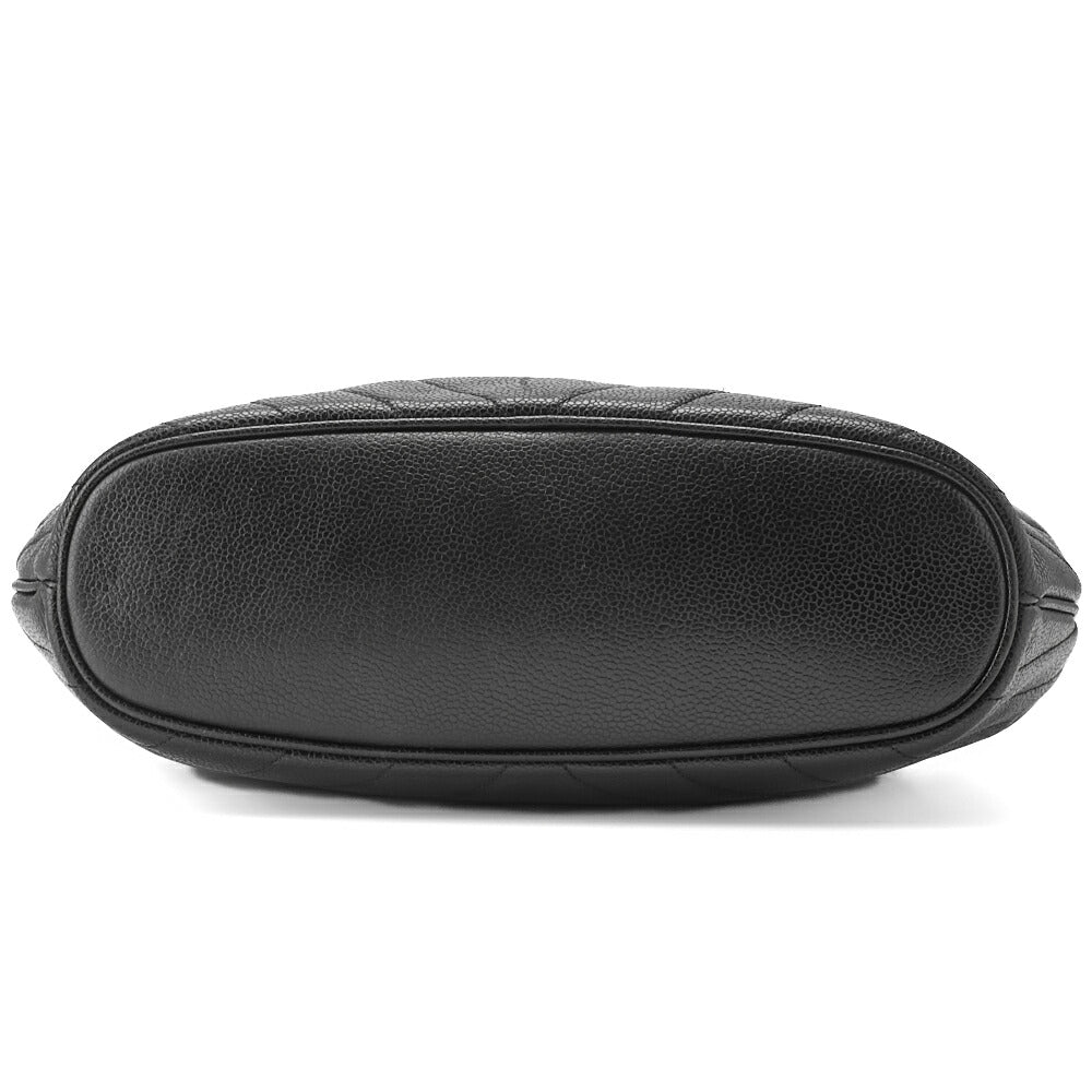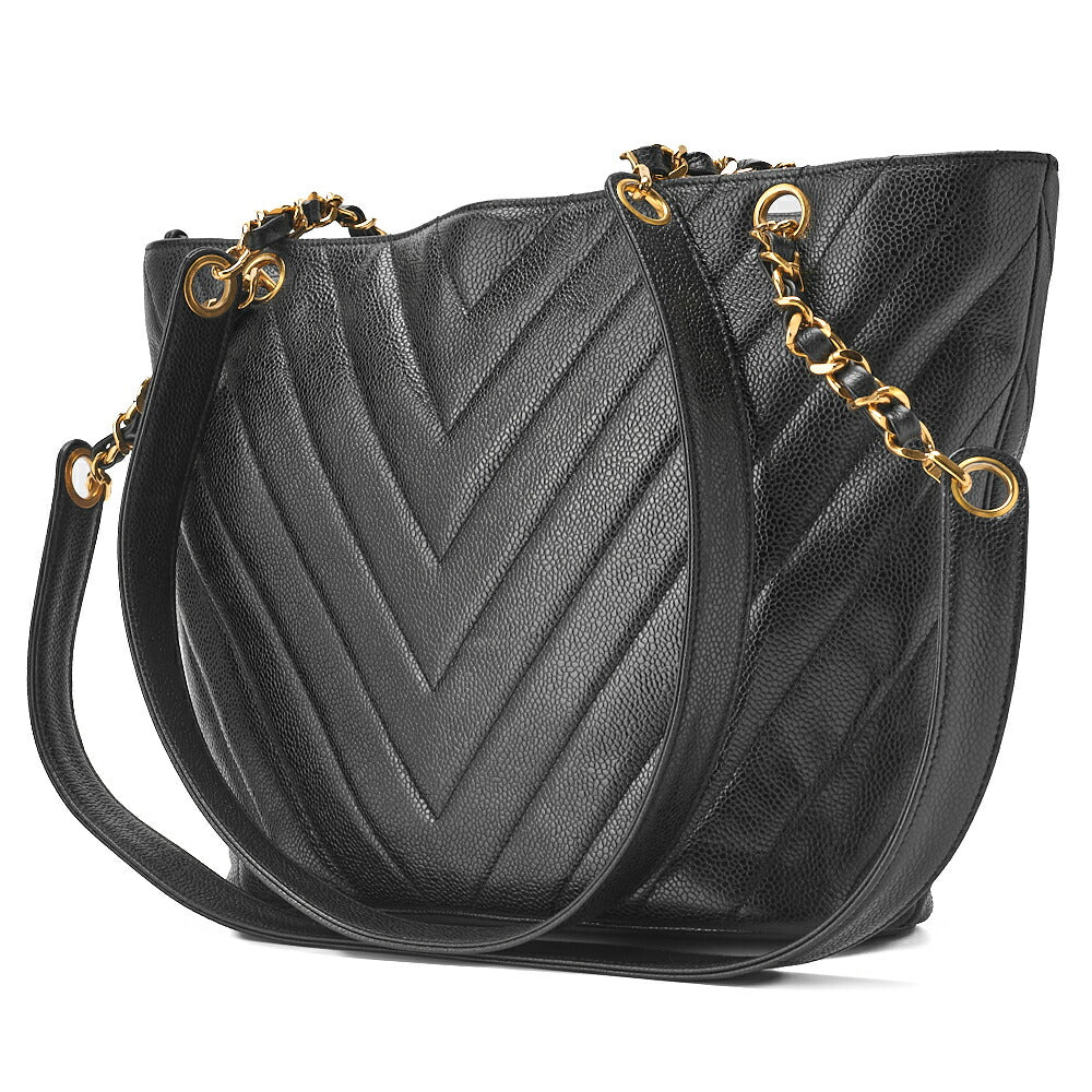 Pre-Owned Shoulder Bag, V-Stitch, Double Chain, Caviar Skin, Black, Gold-Tone Hardware, Pre-Owned