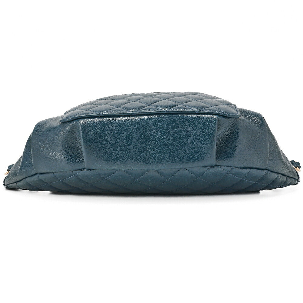 - Color and hardware: Blue lambskin with gold-tone hardware.