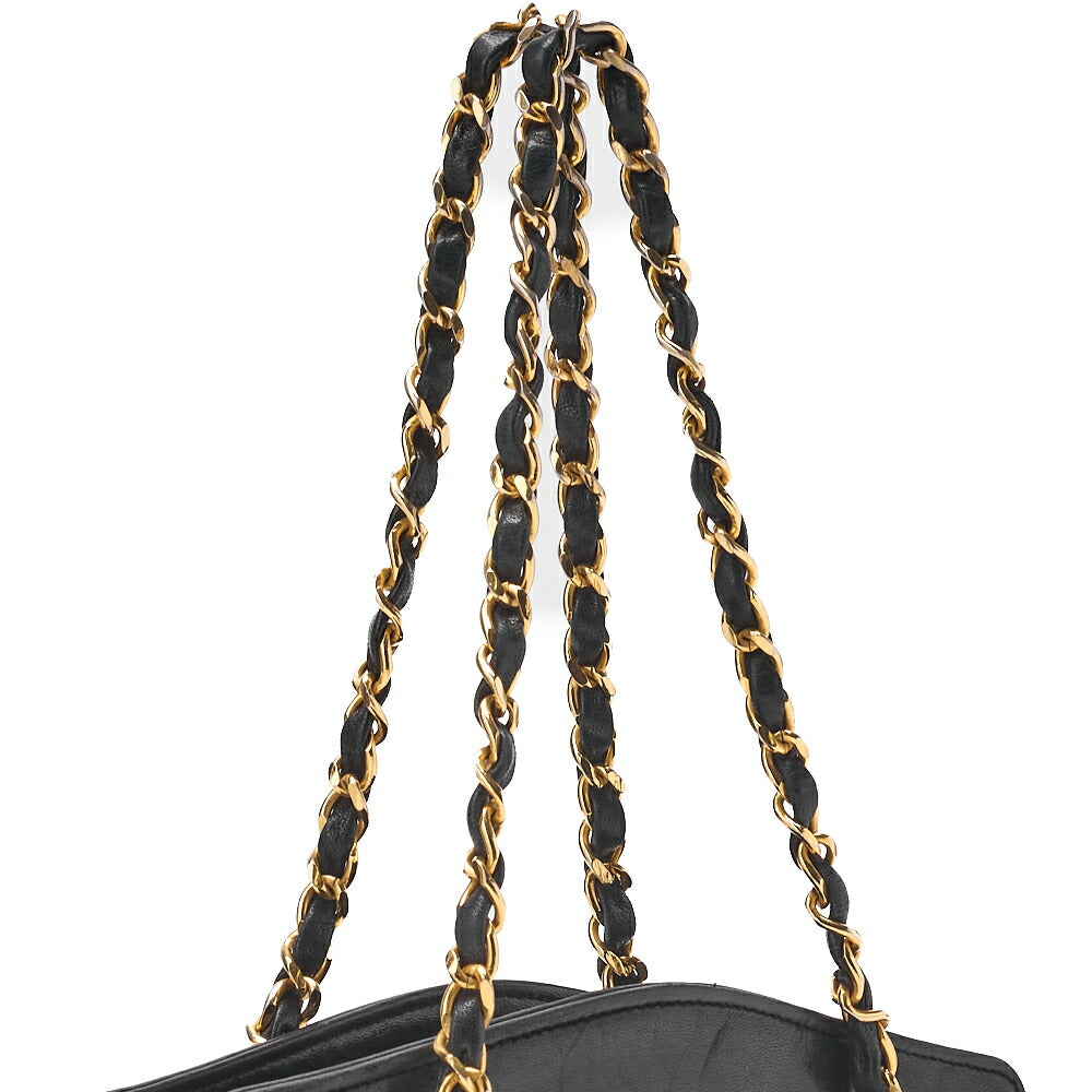 Introducing the exquisite CHANEL With Charm Chain Handbag crafted from luxurious lambskin in a timeless black hue, adorned with elegant gold fittings. This women's handbag is not just a fashion accessory; it’s a statement of sophistication and style that reflects the essence of high-brand elegance. Perfect for any occasion, this pre-loved gem is in good condition and features subtle wear that adds character and charm.