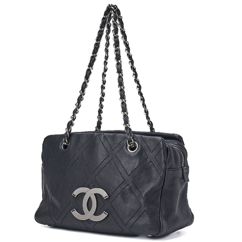 Pre-Owned Tote Bag Matelasse Coco Mark Double Chain Vintage Calf Black Silver-Tone Hardware Pre-Owned