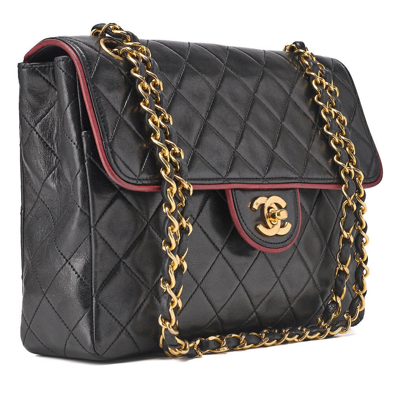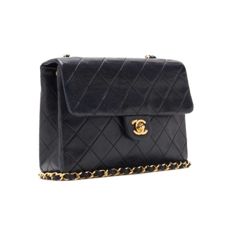 Pre-Owned Shoulder Bag, Chain Shoulder, Matelasse, Lambskin, Black, Gold-Tone Hardware, Pre-Owned