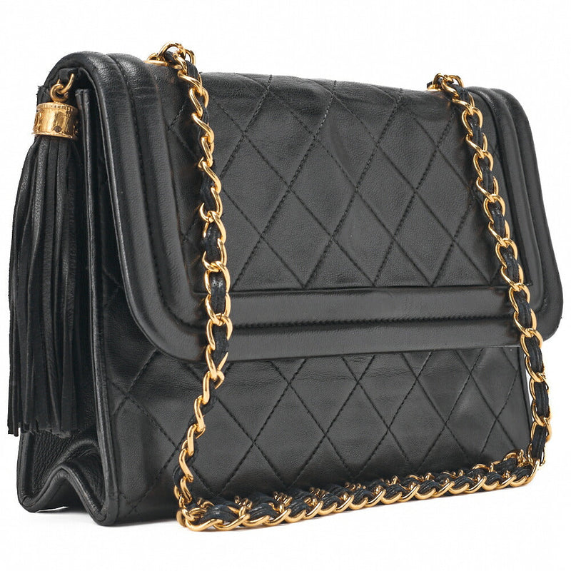 Pre-Owned Chain Shoulder Bag Matelassé Coco Mark Fringe Lambskin Black Gold-Tone Hardware, Pre-Owned