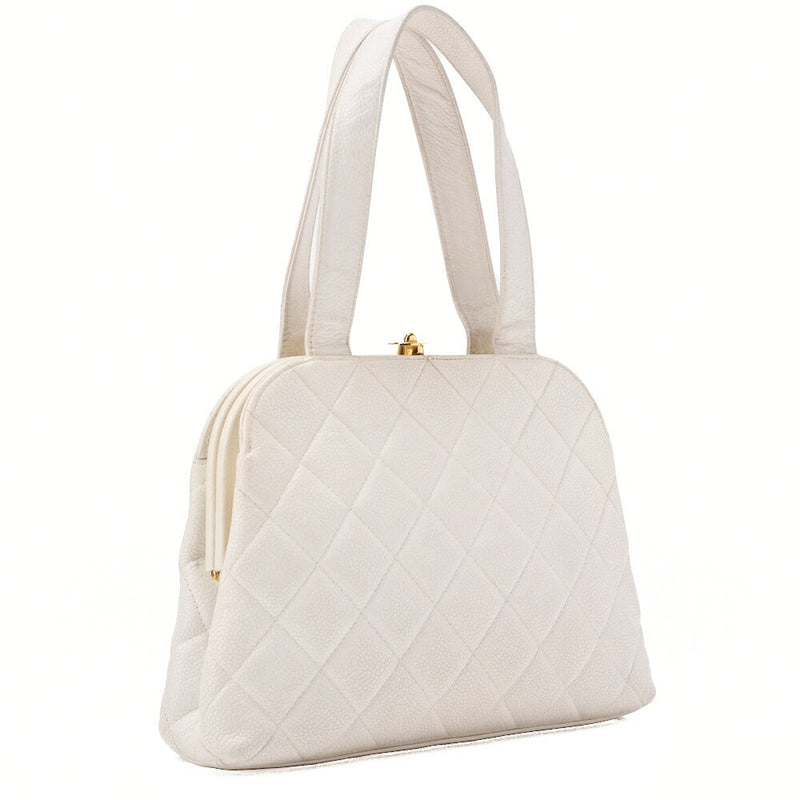 Pre-Owned Handbag Matelassé Mouth Coco Mark Caviar Skin White Gold-Tone Hardware, Pre-Owned