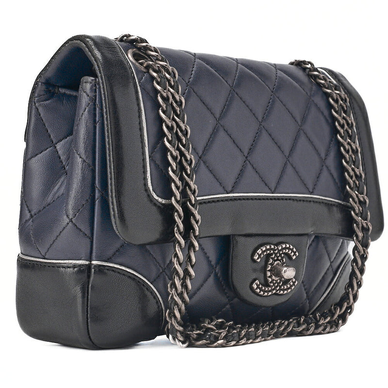 Pre-Owned Chain Shoulder Bag Mini Matelassé Lambskin Bicolor Single Flap Turnlock Silver-Tone Hardware, Pre-Owned